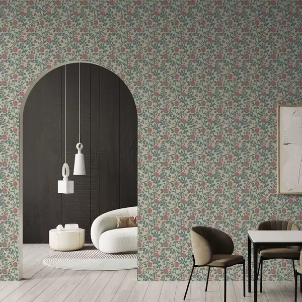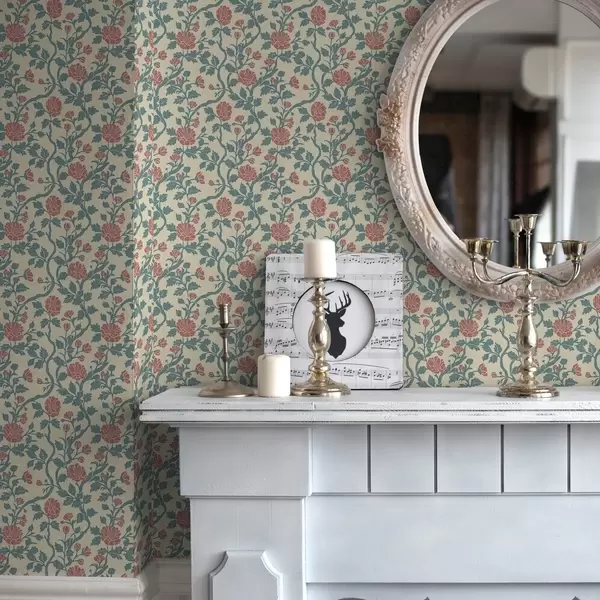 Tapeta Retro vzor s květinami v červené a zelené barvě Nr. a00250