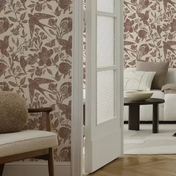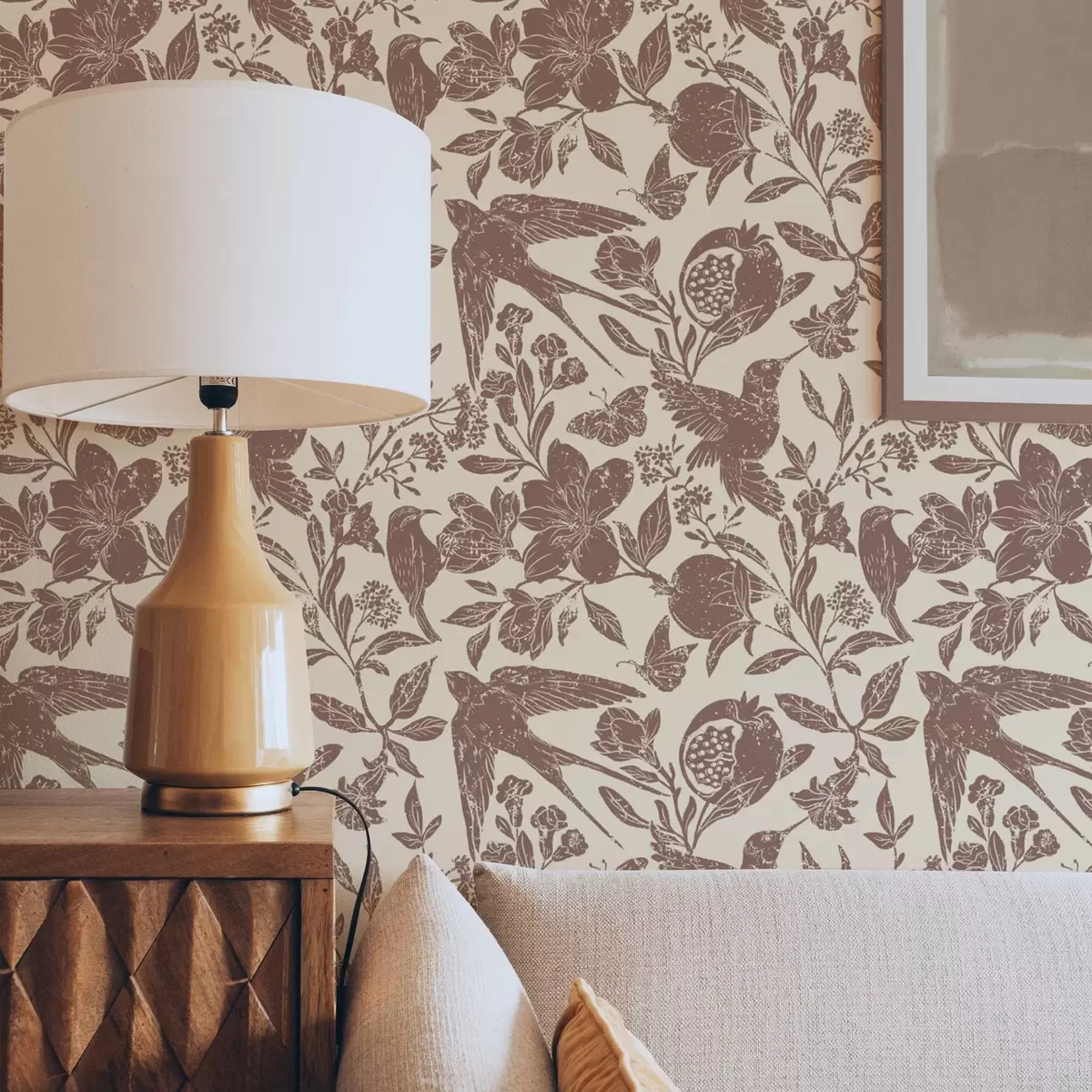 Tapeta Ptáci, granátová jablka a květiny ve vintage stylu Nr. a00263
