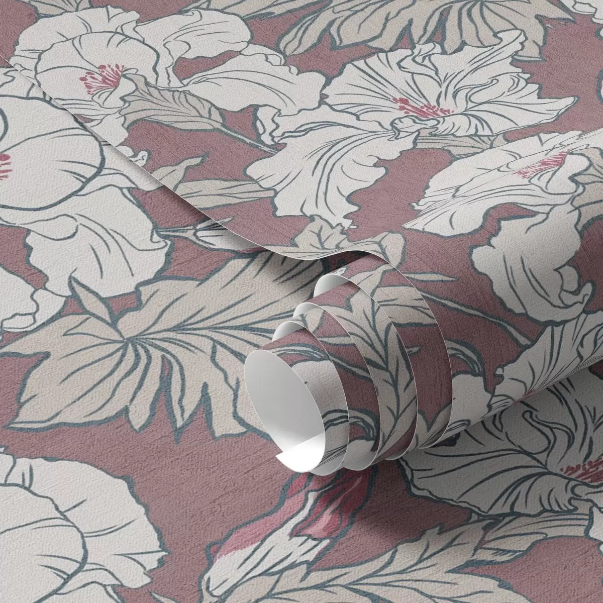 Tapeta Bílý ibišek na růžovém pozadí s červenými poupaty Nr. a00272