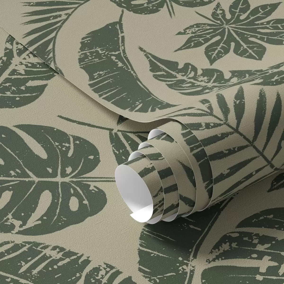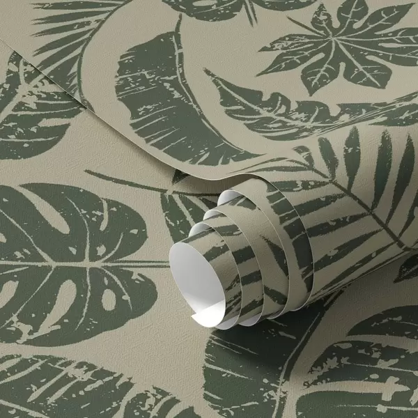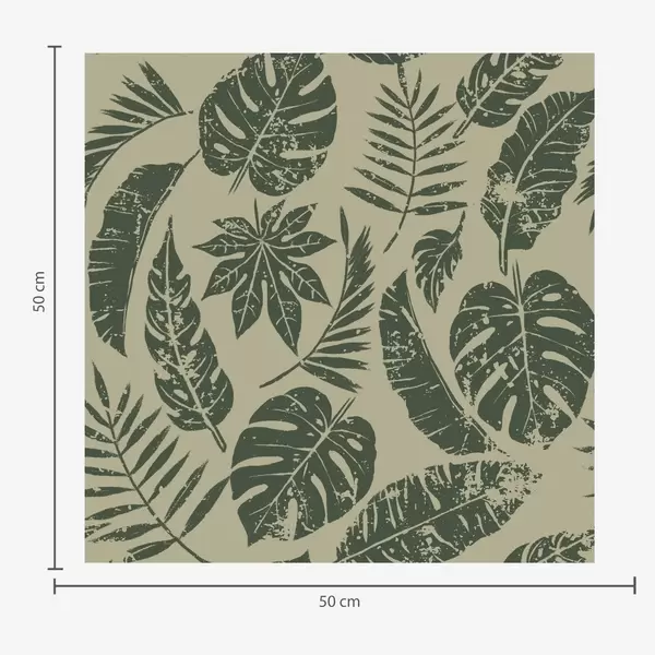 Tapeta Tropické listy ve stylu linorytu, zelené na žlutém podkladu Nr. a00274