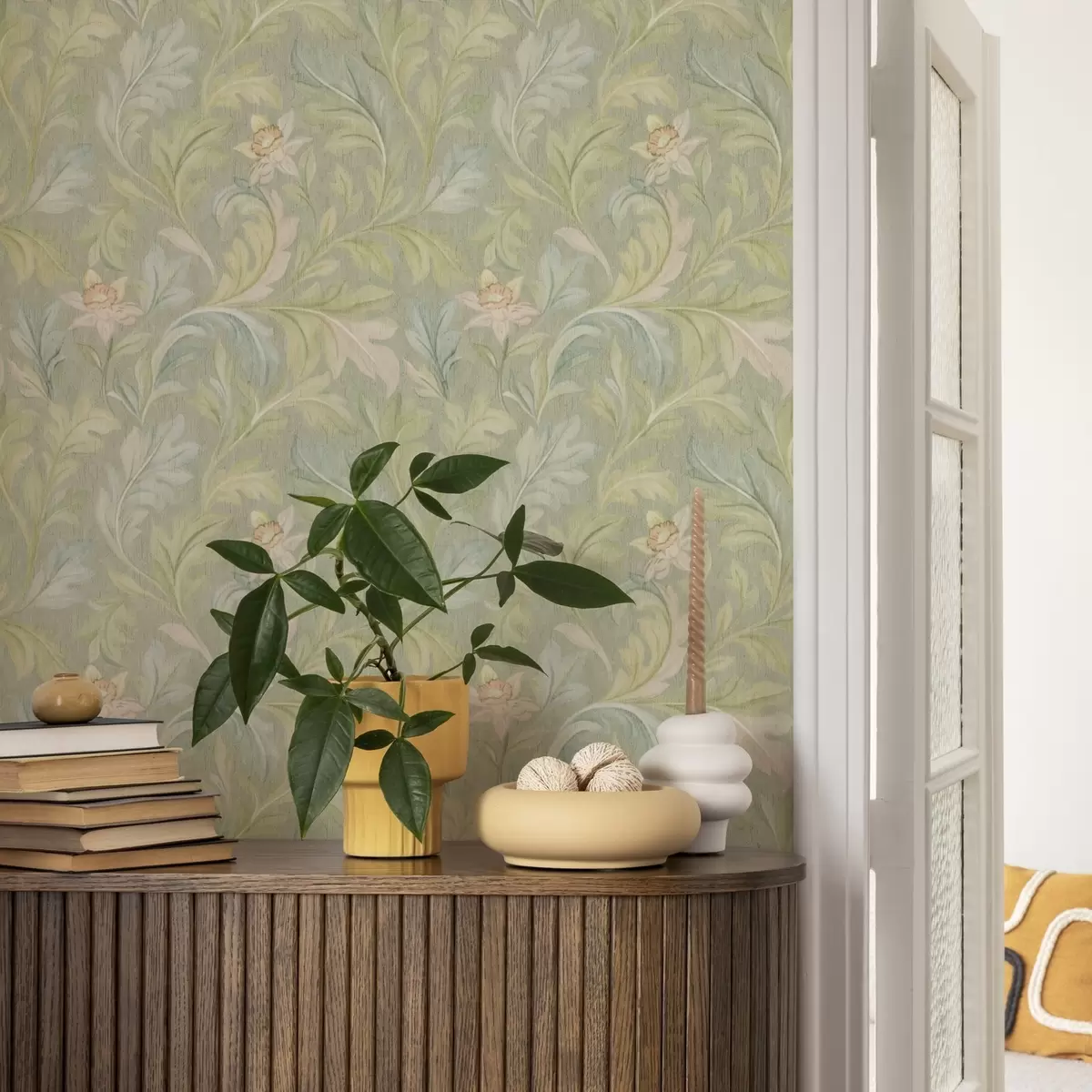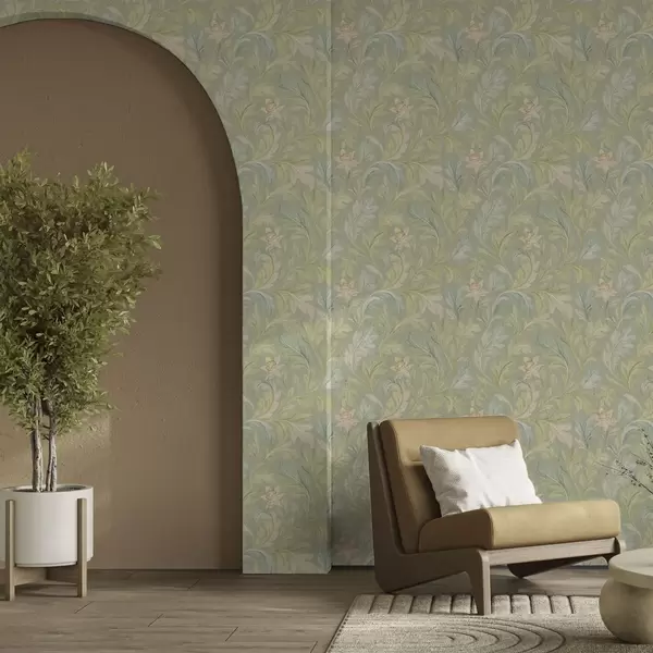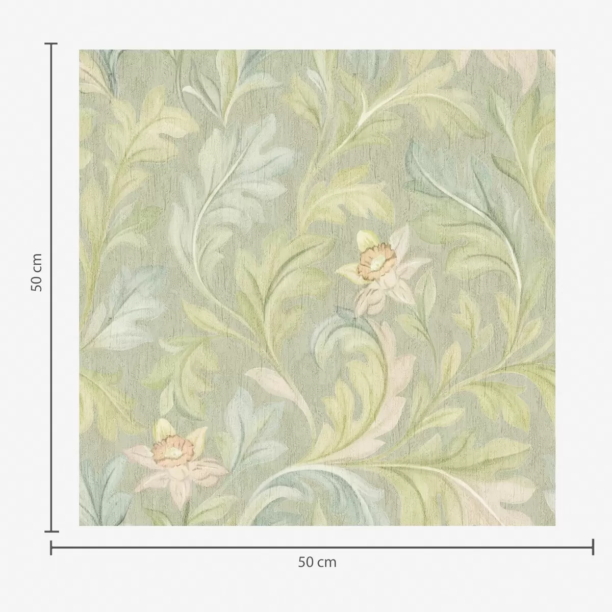 Tapeta Vintage listy na zeleném pozadí, pastelové barvy Nr. a00277