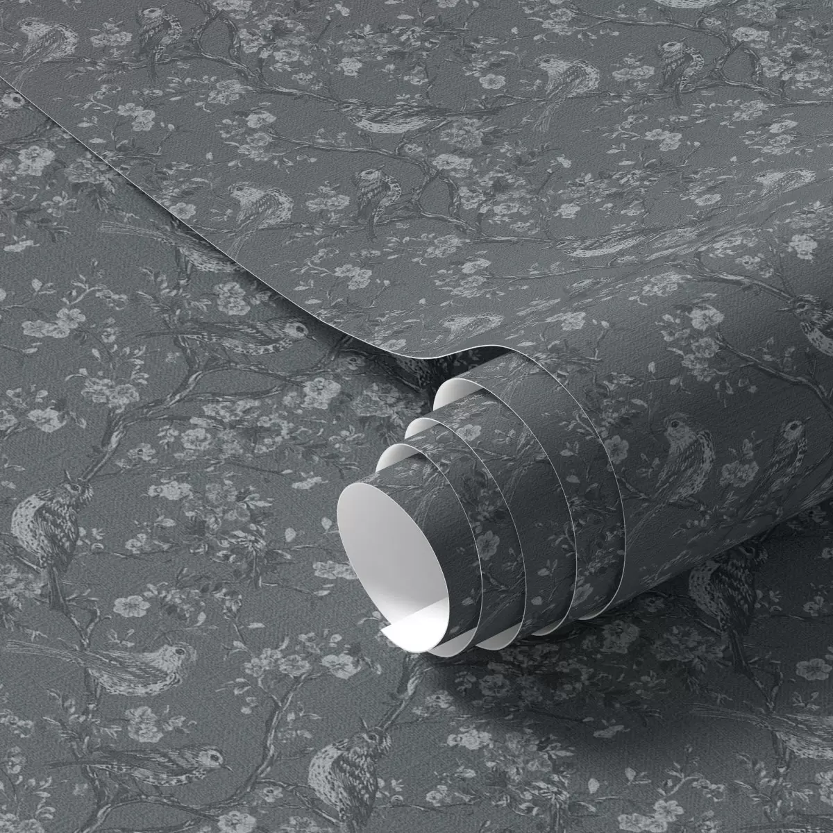 Tapety Tmavý vzor s ptáky a květinami, klasický styl a00281