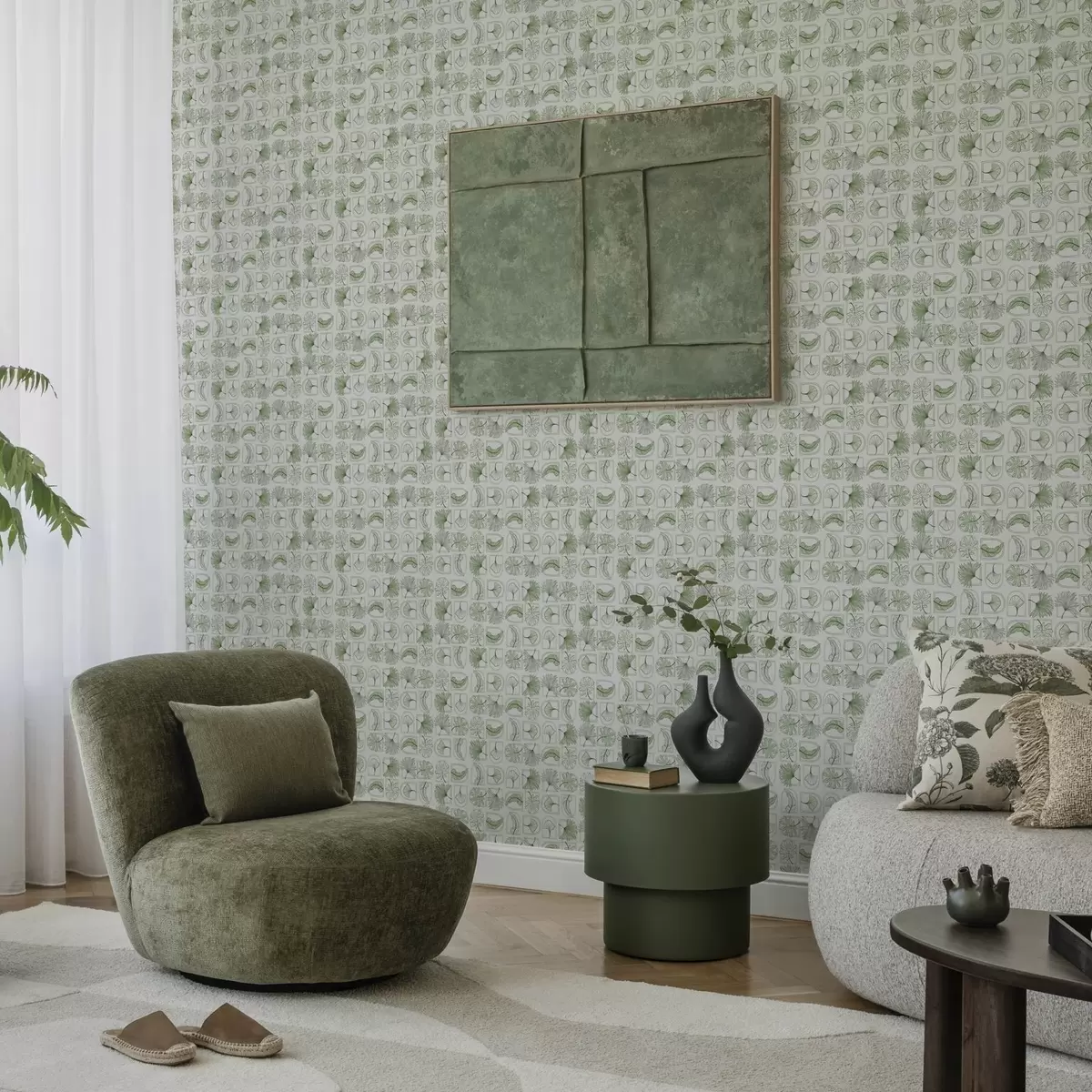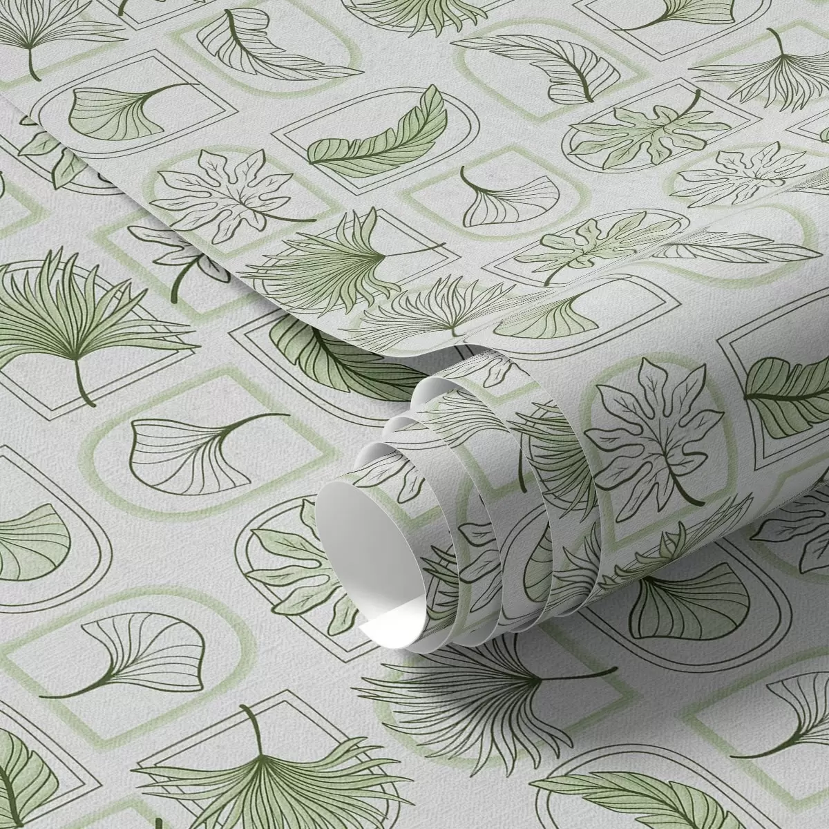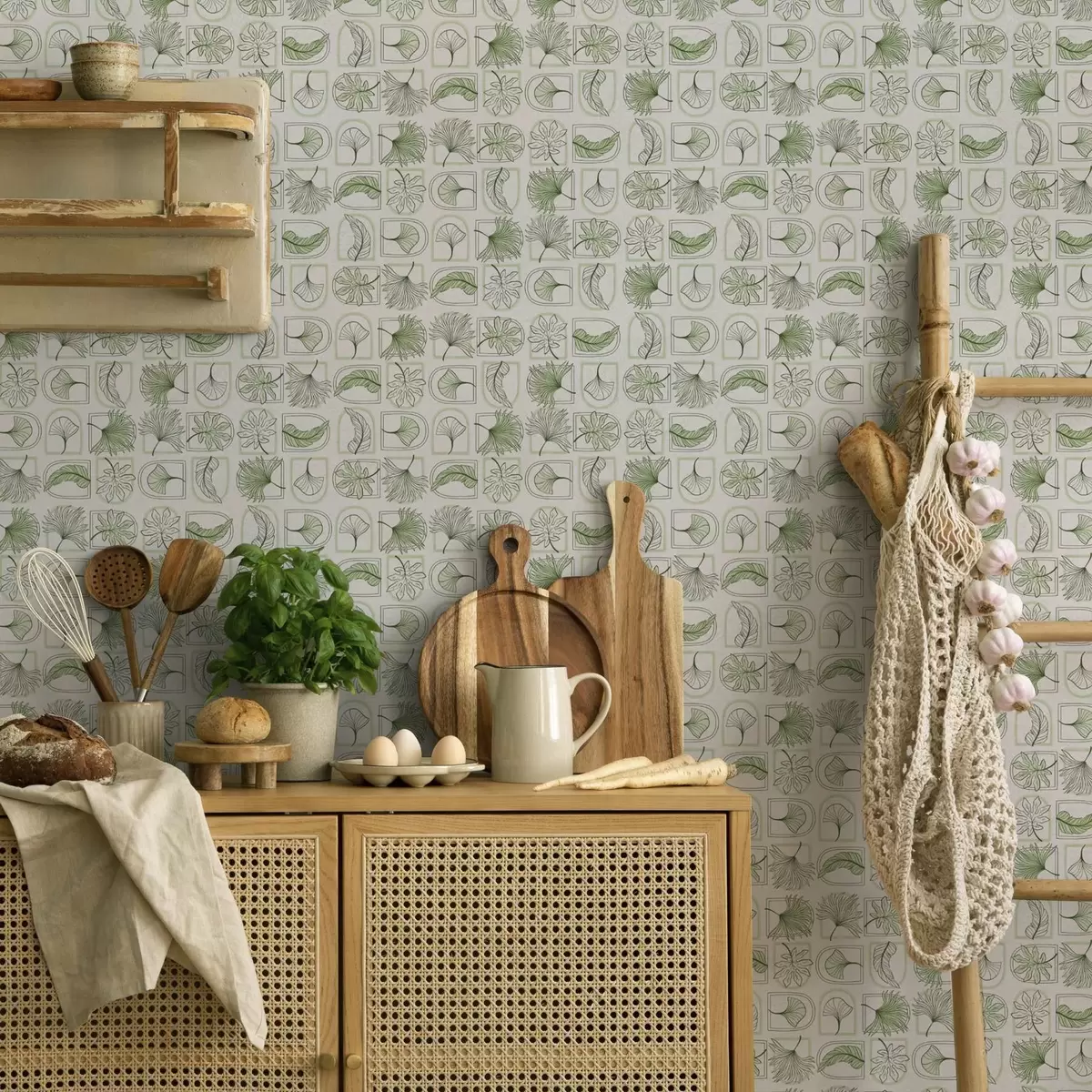 Tapeta Grafický vzor se zelenými listy ve čtvercích Nr. a00287