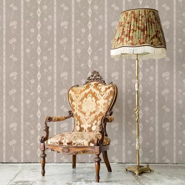Tapeta Pruhy s kopretinami a krajkou na šedobéžovém pozadí Nr. a00295