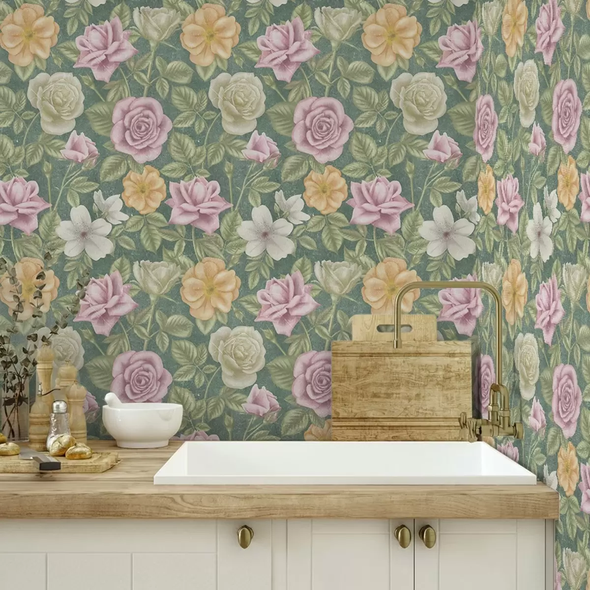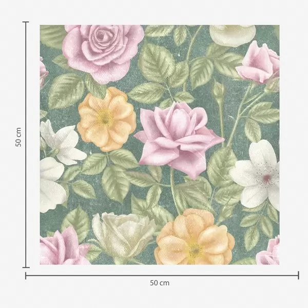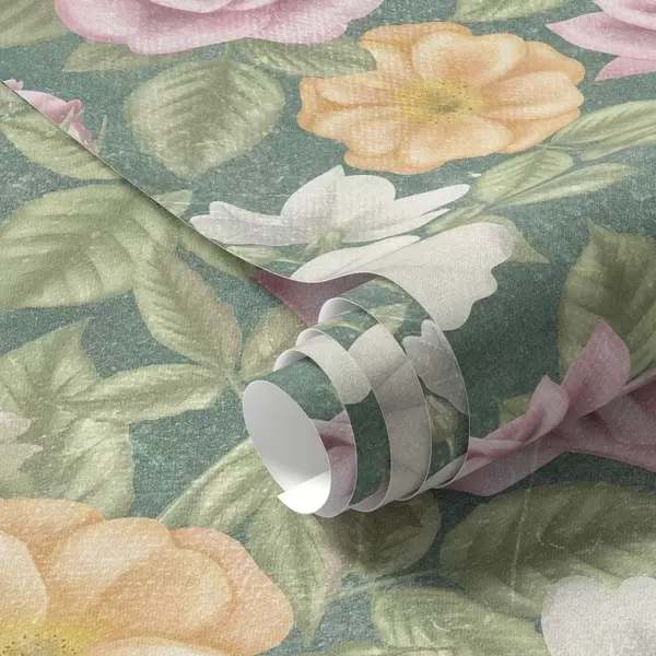 Tapeta Růžové krémové a žluté růže na zeleném pozadí Nr. a00300
