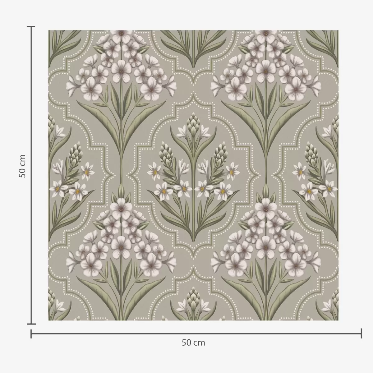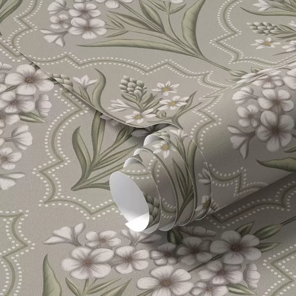 Tapeta Symetrický vzor s bílými květy na šedém pozadí Nr. a00302