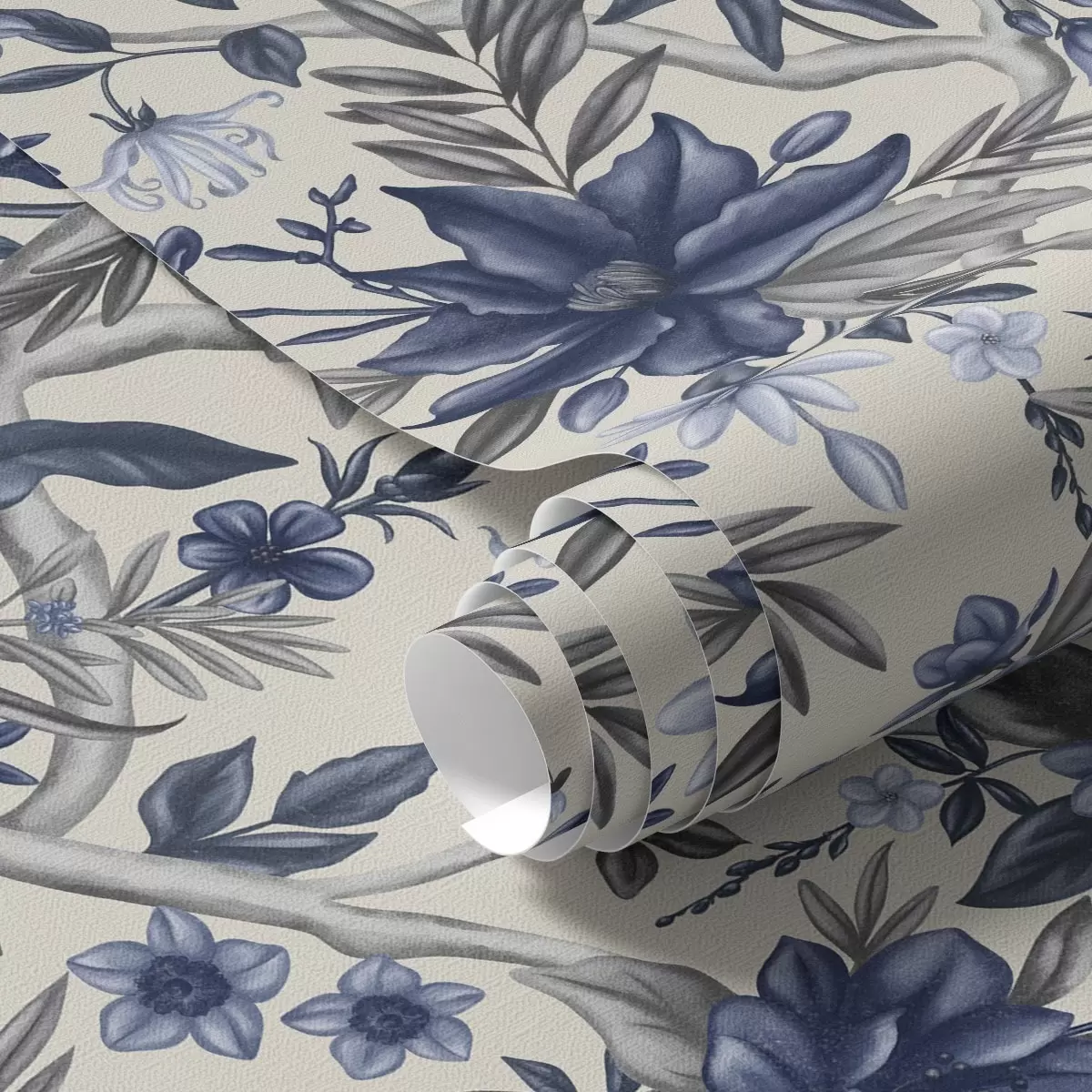 Tapeta Modré a šedé květy na světlém pozadí Nr. a00304
