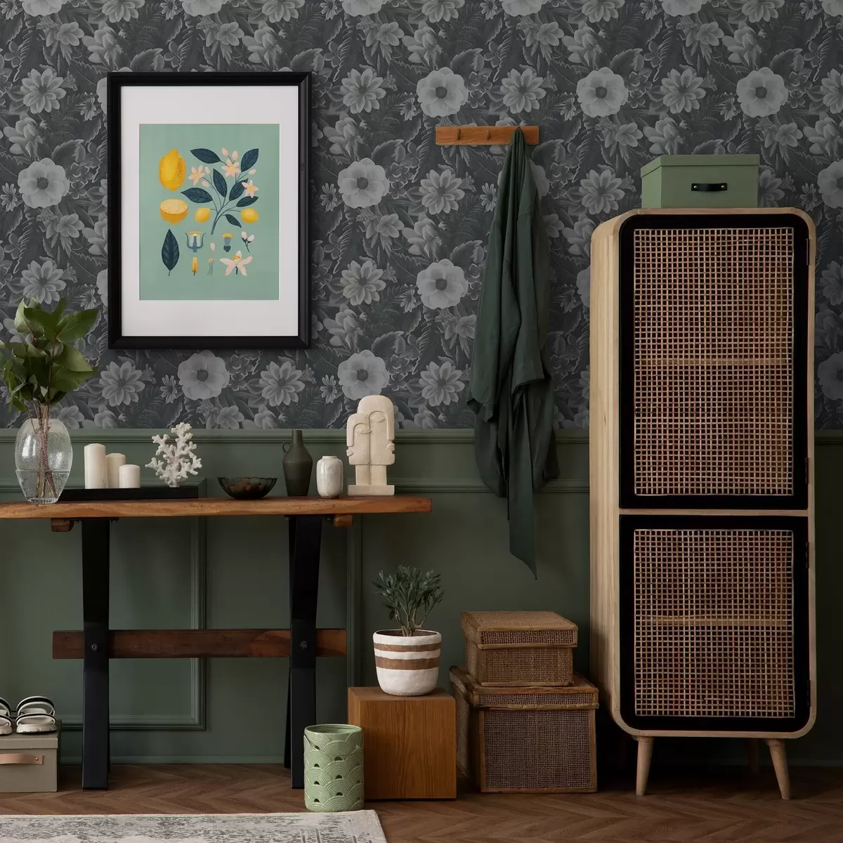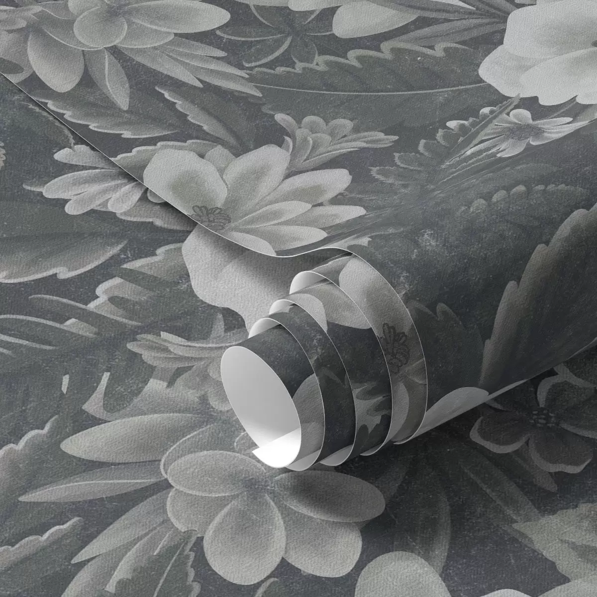 Tapeta Šedobílý květinový vzor s retro efektem Nr. a00307