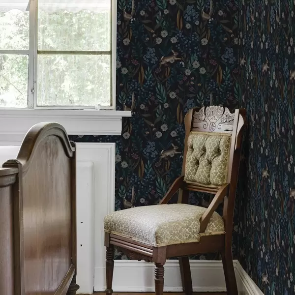 Tapeta Tmavý les s květinami, zajícem a ptákem Nr. a00310