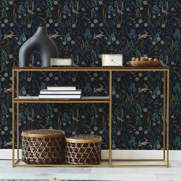 Tapeta Tmavý les s květinami, zajícem a ptákem Nr. a00310