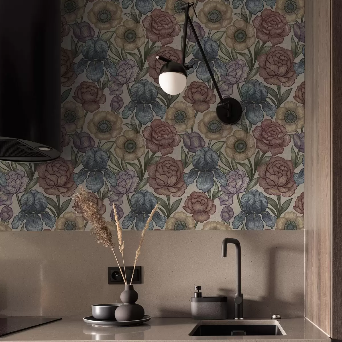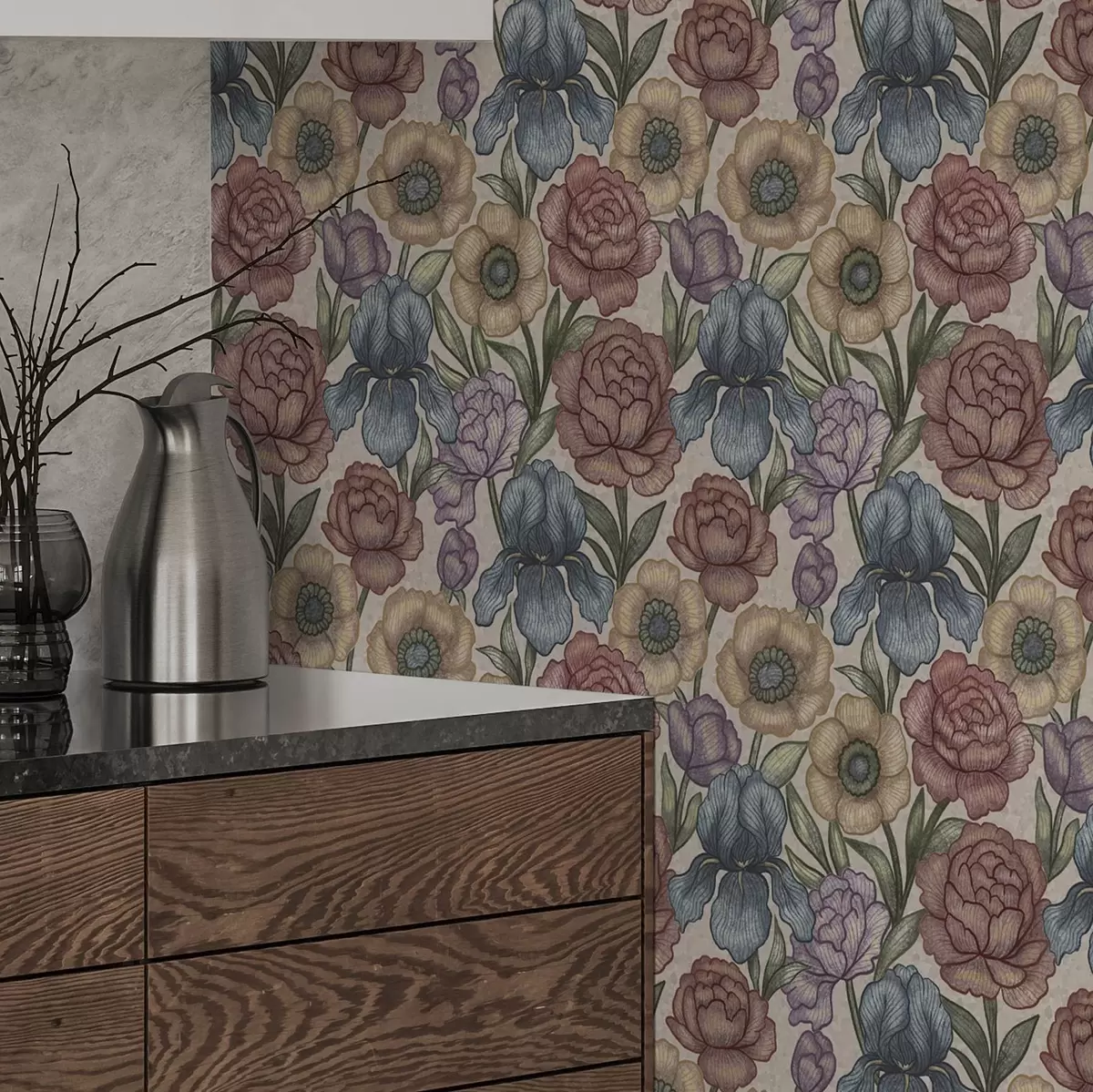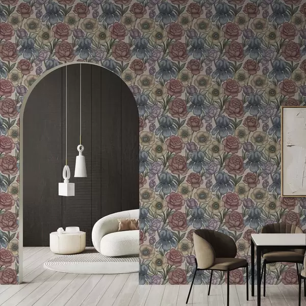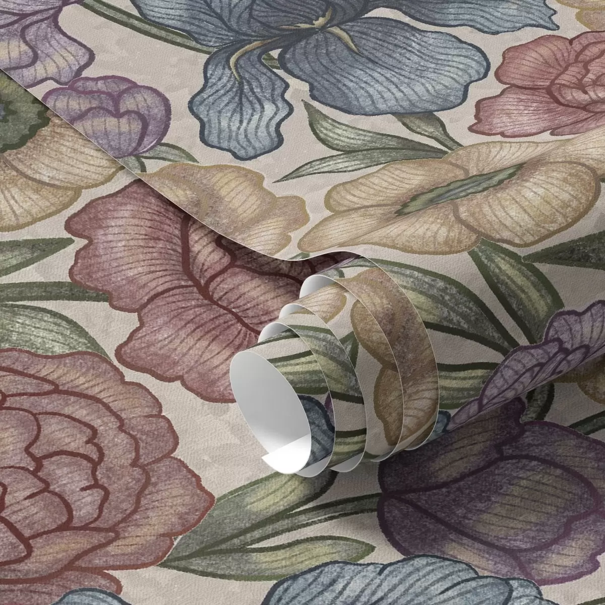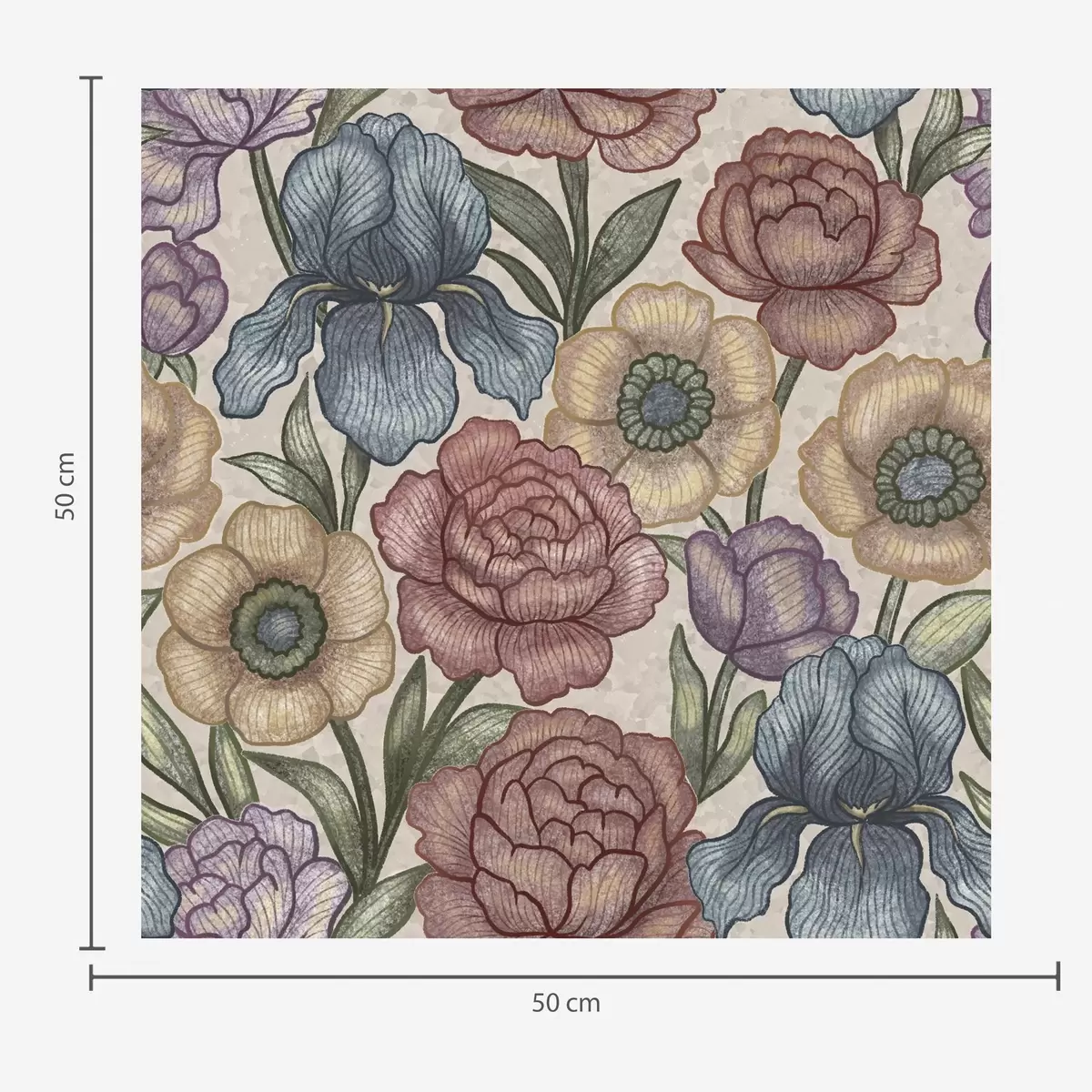 Tapeta Velké květinové ilustrace s kosatci a pivoňkami Nr. a00325