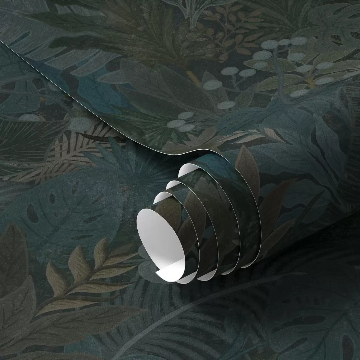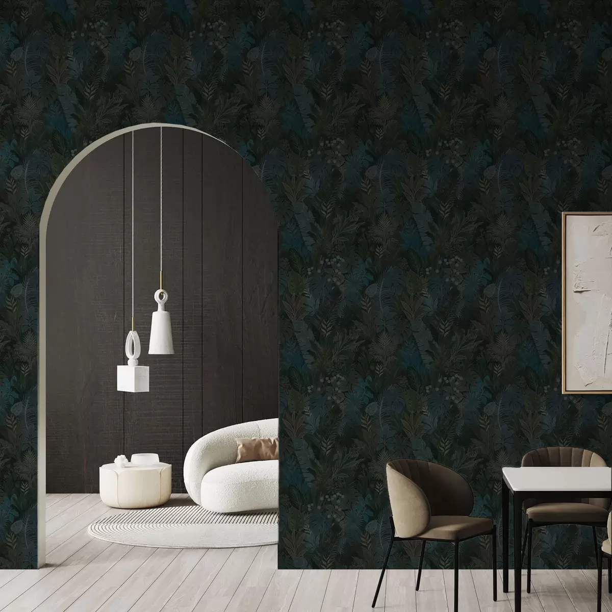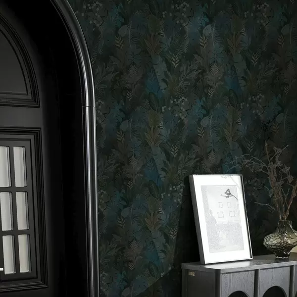 Tapeta Tmavě zelené tropické listí s modrými akcenty Nr. a00327