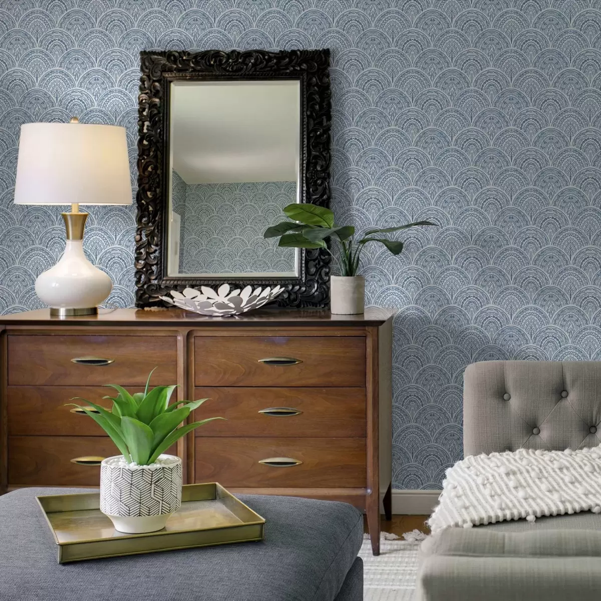 Tapeta Modrý ornament s oblouky a vzory Nr. a00332