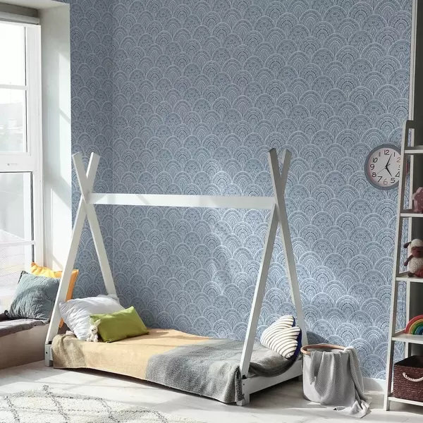 Tapeta Modrý ornament s oblouky a vzory Nr. a00332