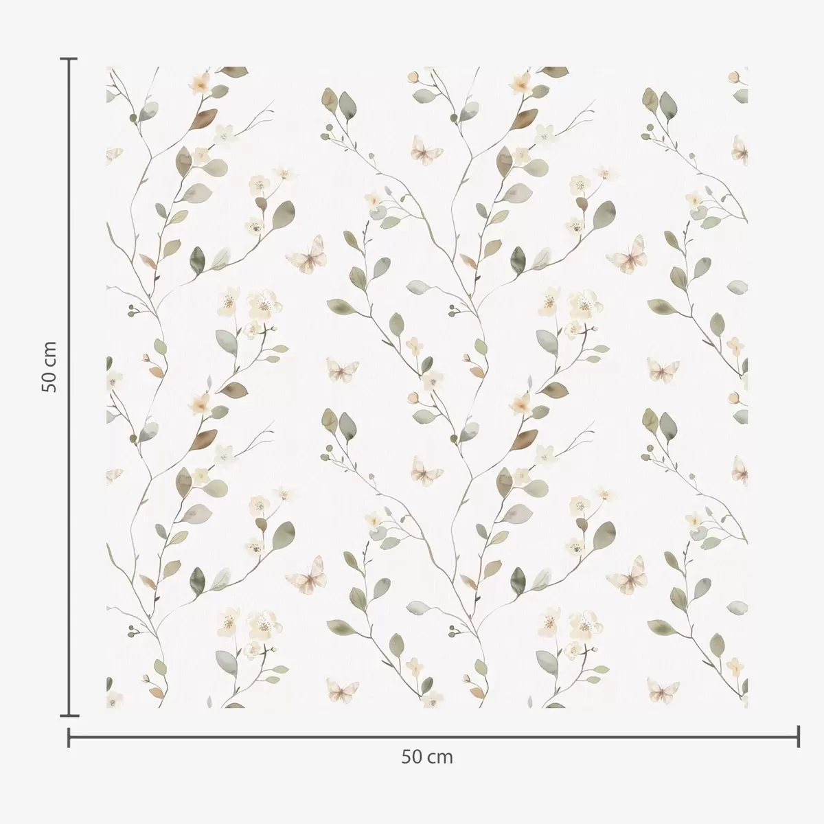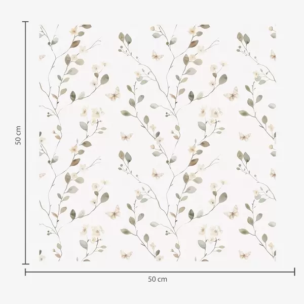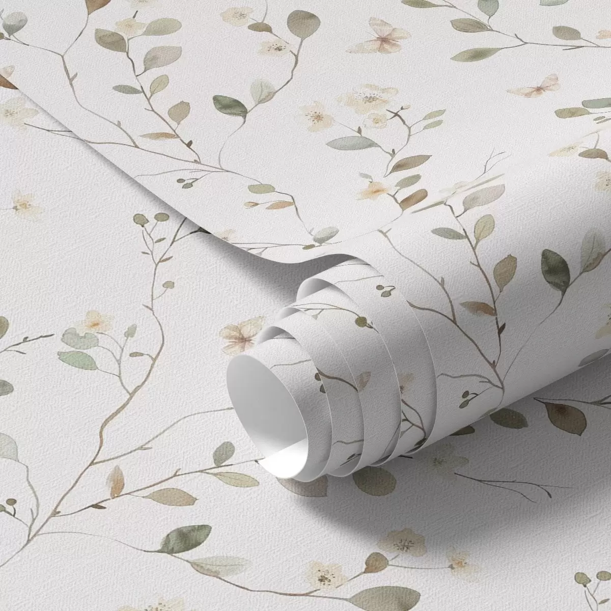 Tapeta Tenké větve s květinami a motýly na bílém pozadí Nr. a00342