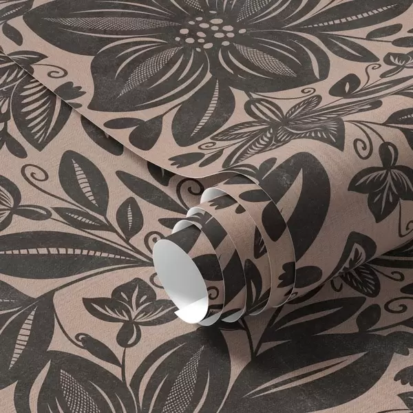 Tapeta Černo-růžový etnický květinový vzor a růžový etnický květinový vzor Nr. a00351