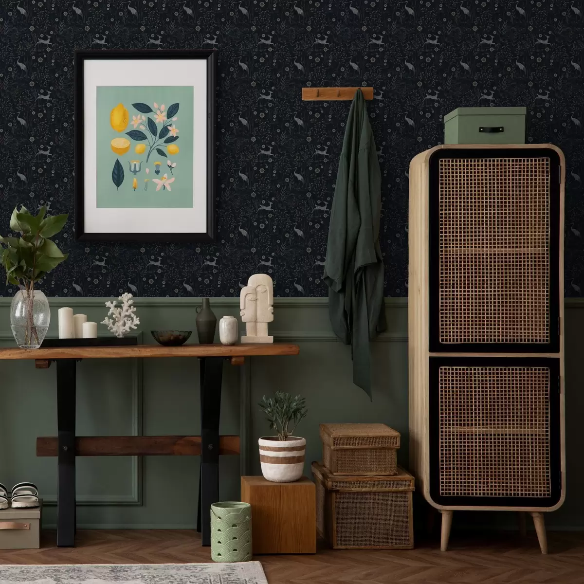 Tapeta Tmavé pozadí s bílými ptáky a jeleny Nr. a00363