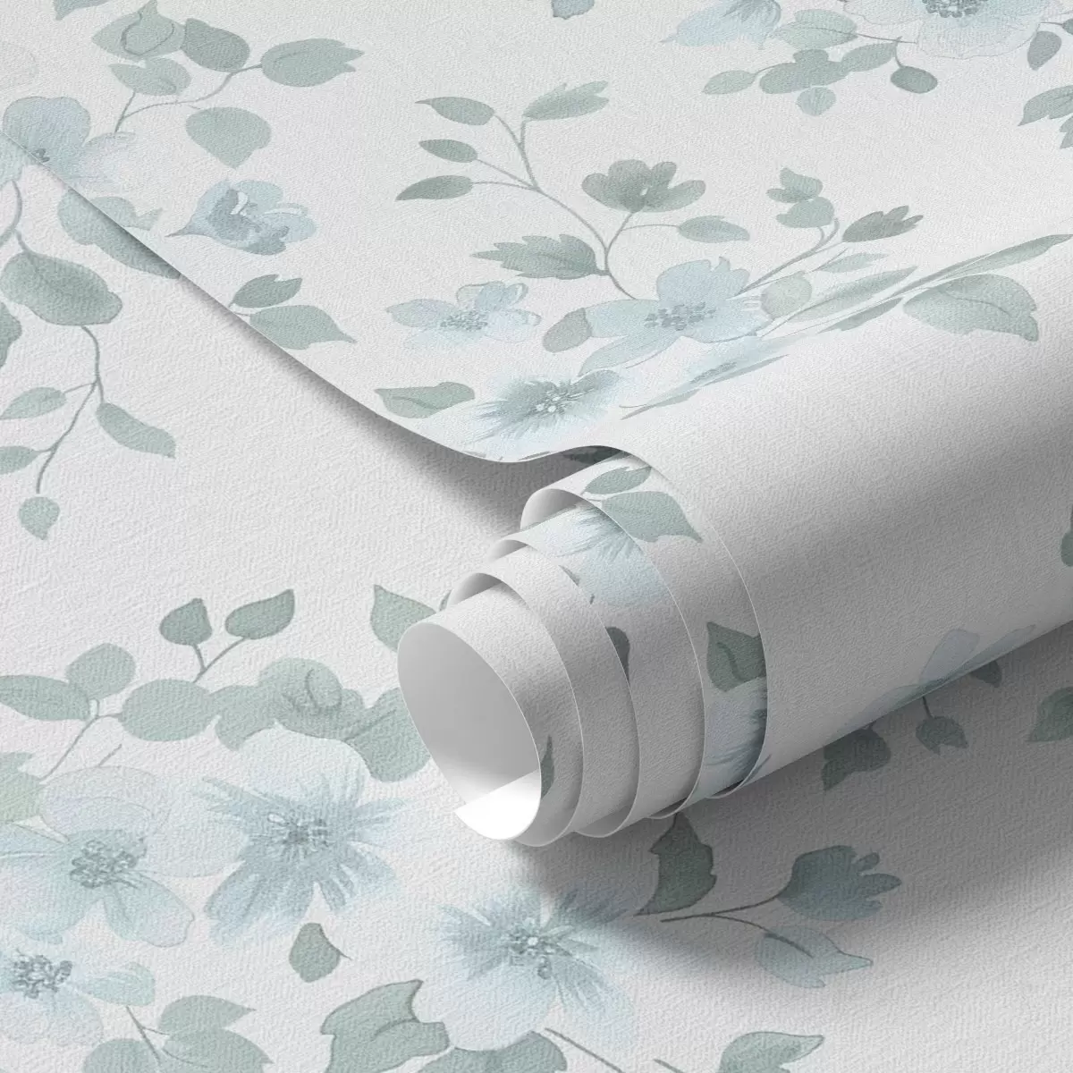 Tapeta Bleděmodré květiny na bílém pozadí, akvarelový styl Nr. a00364