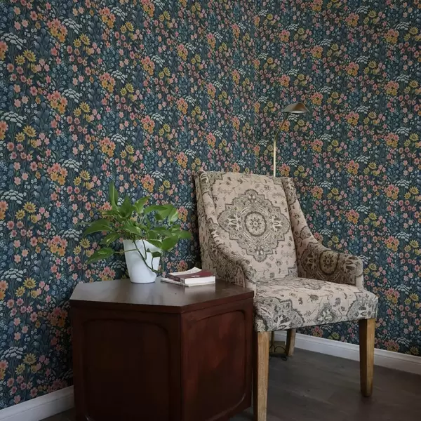 Tapeta Barevné akvarelové luční květy na tmavě modré barvě Nr. a00381