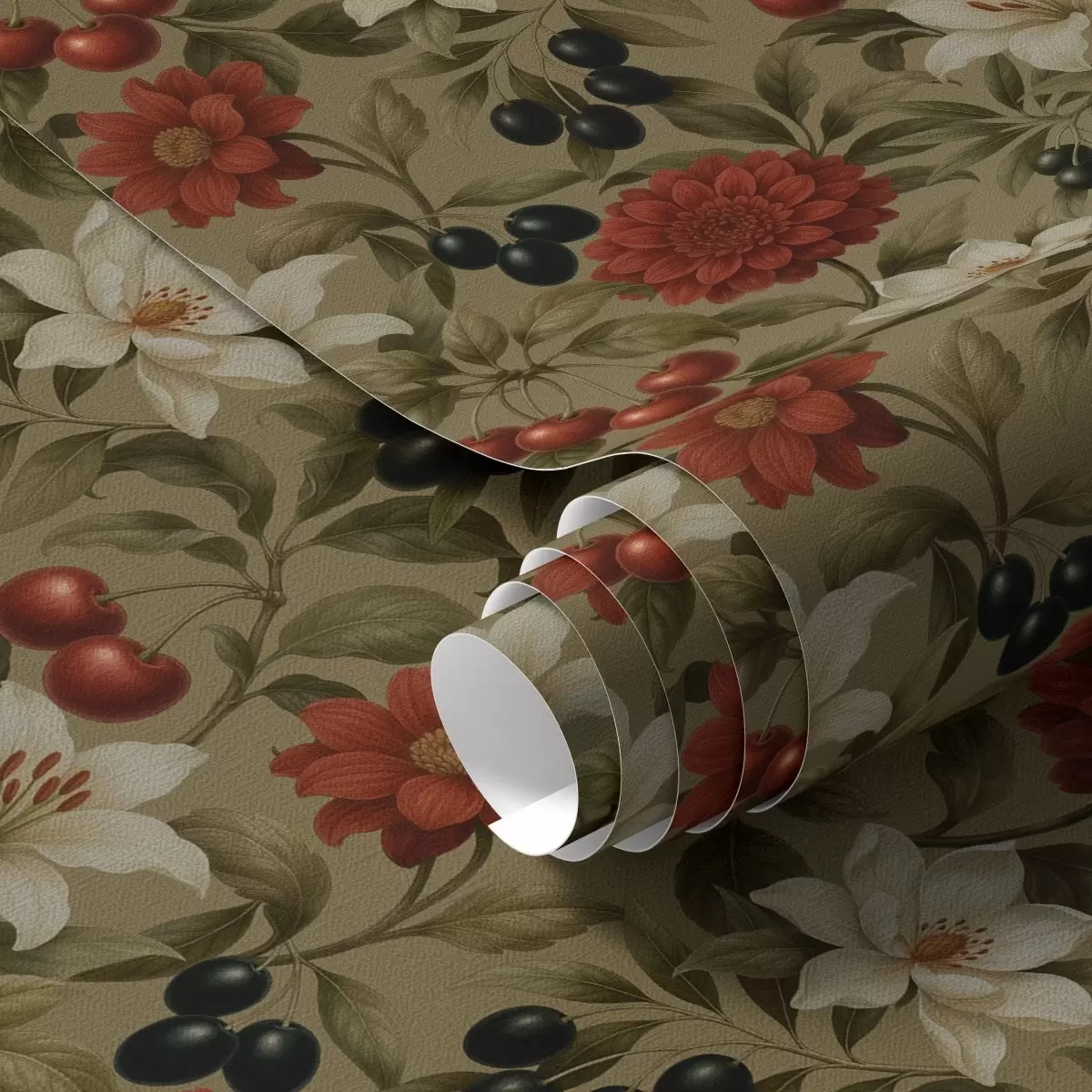 Tapeta Třešně, květy a černé olivy Nr. a00384