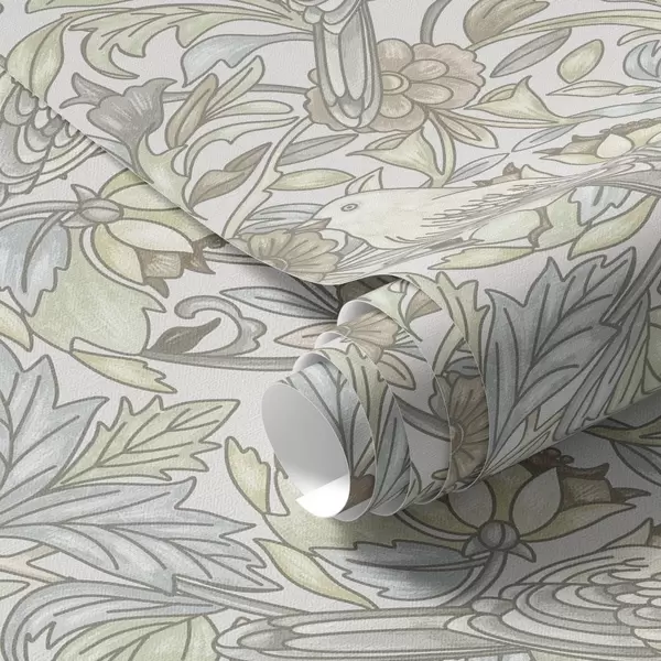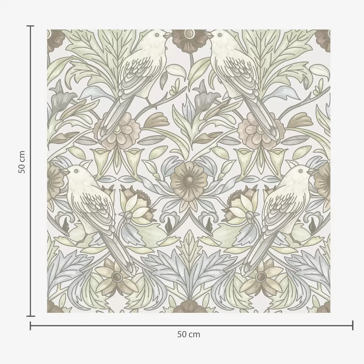 Tapeta Secesní ptáci a pastelově stylizované květiny Nr. a00385
