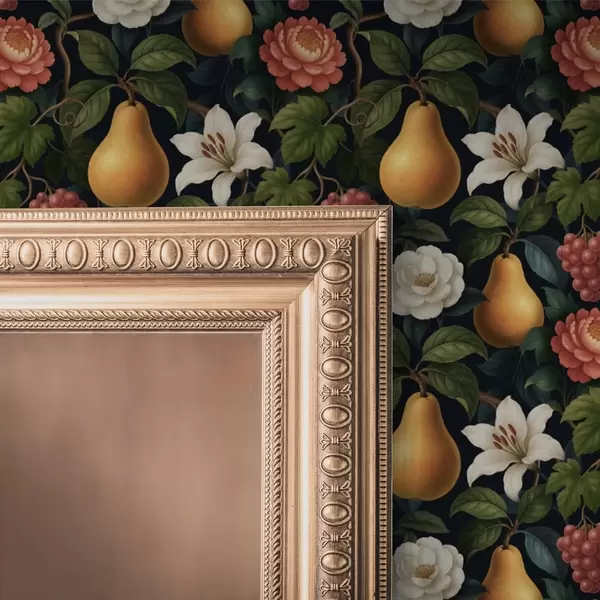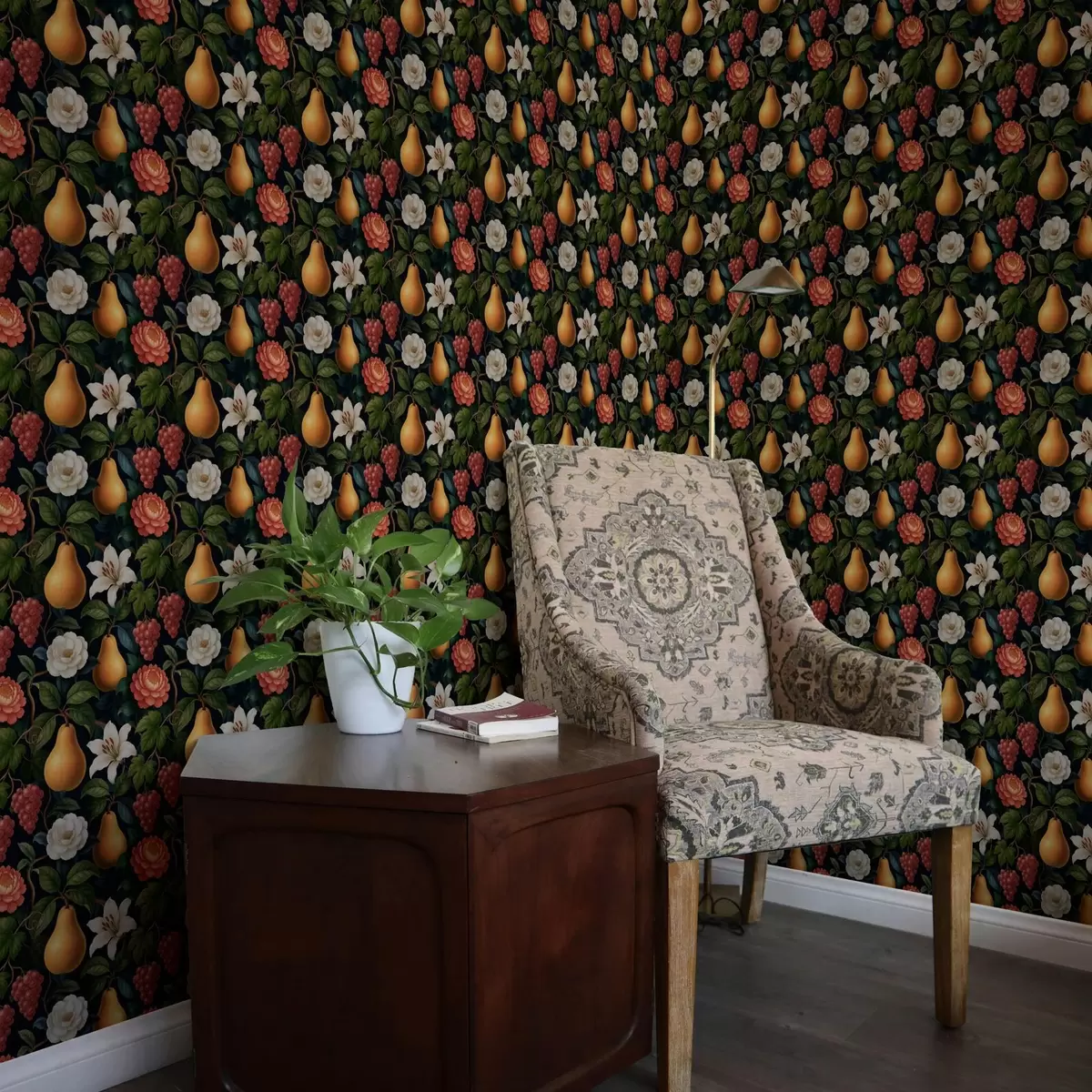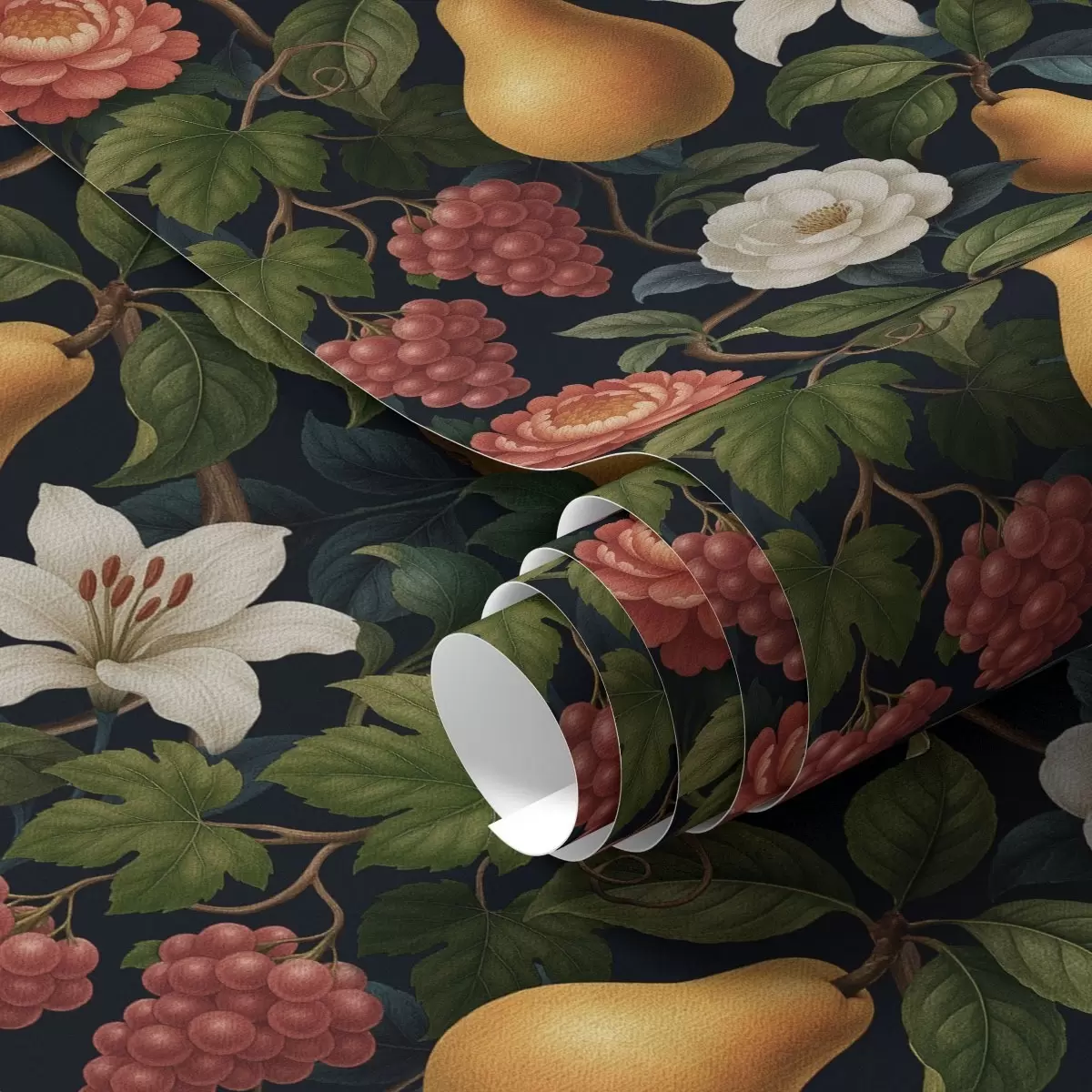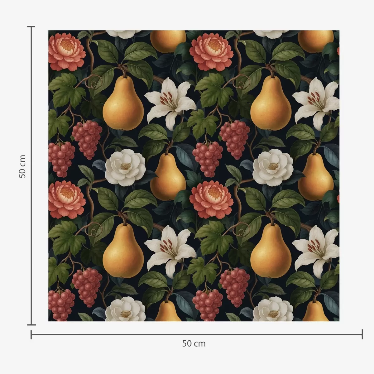 Tapeta Barokní ovoce a květiny na dramatickém tmavém pozadí Nr. a00387