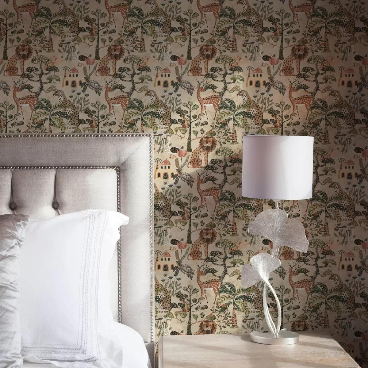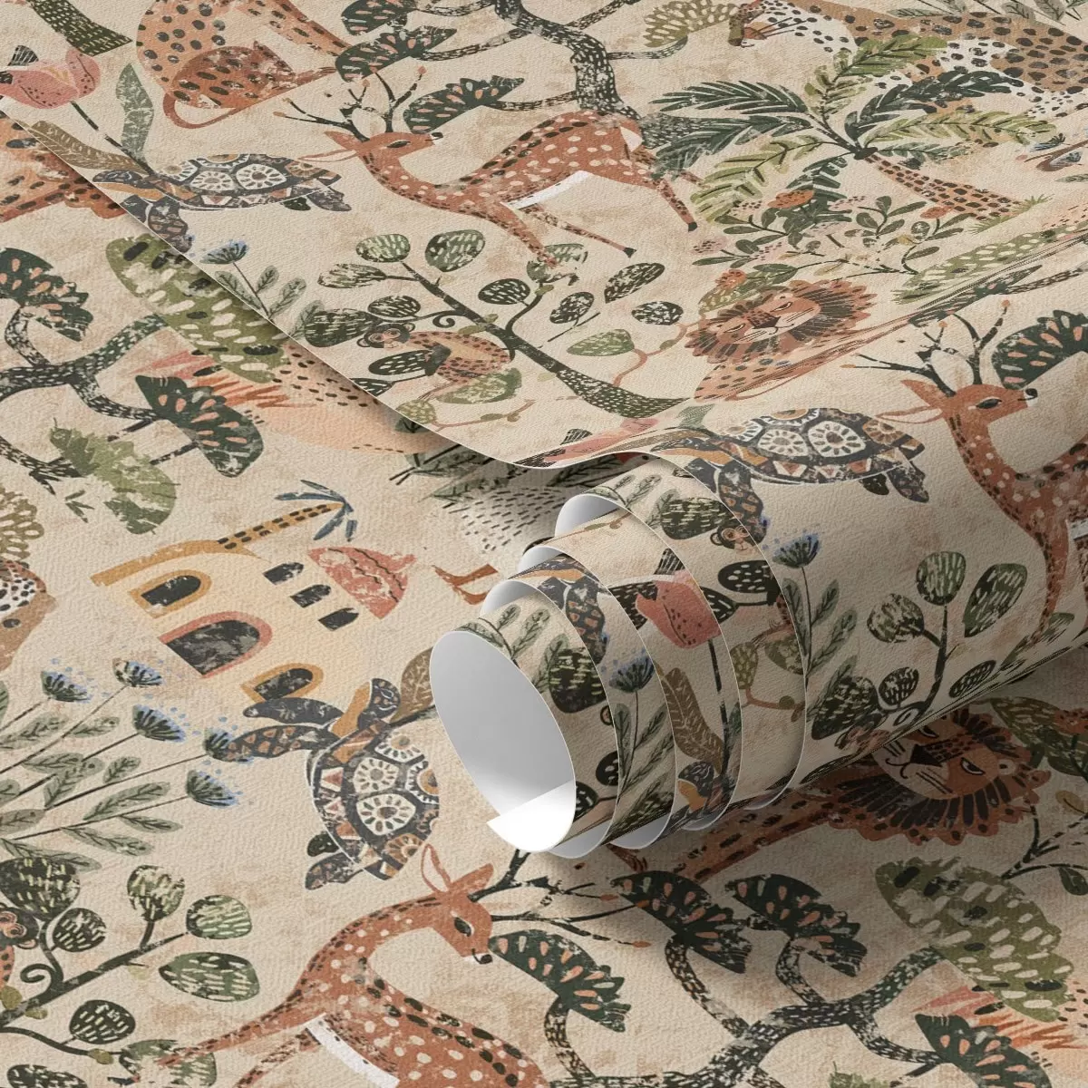 Tapeta Safari zvířata a listy savany v teplých zemitých tónech Nr. a00392