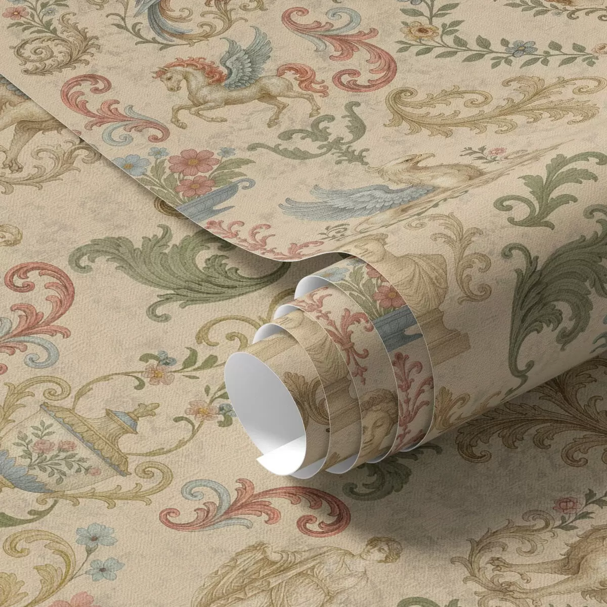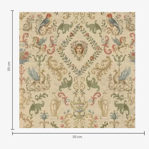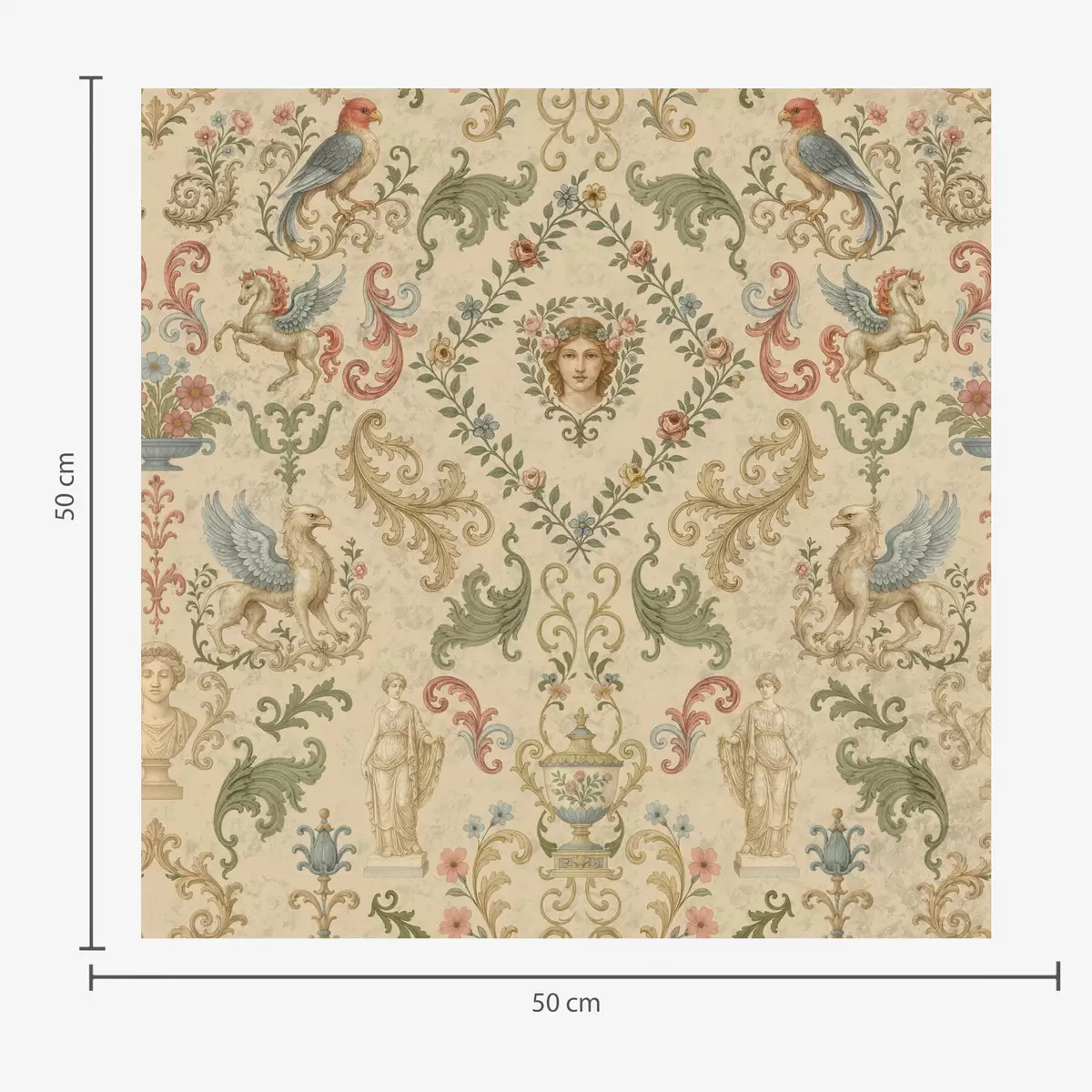 Tapeta Vintage ozdoba s gryfy, květinami a figurkami Nr. a00402