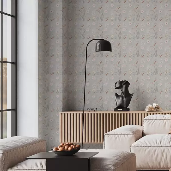 Tapeta Pastelové květiny a bobule na světle šedém pozadí Nr. a00406