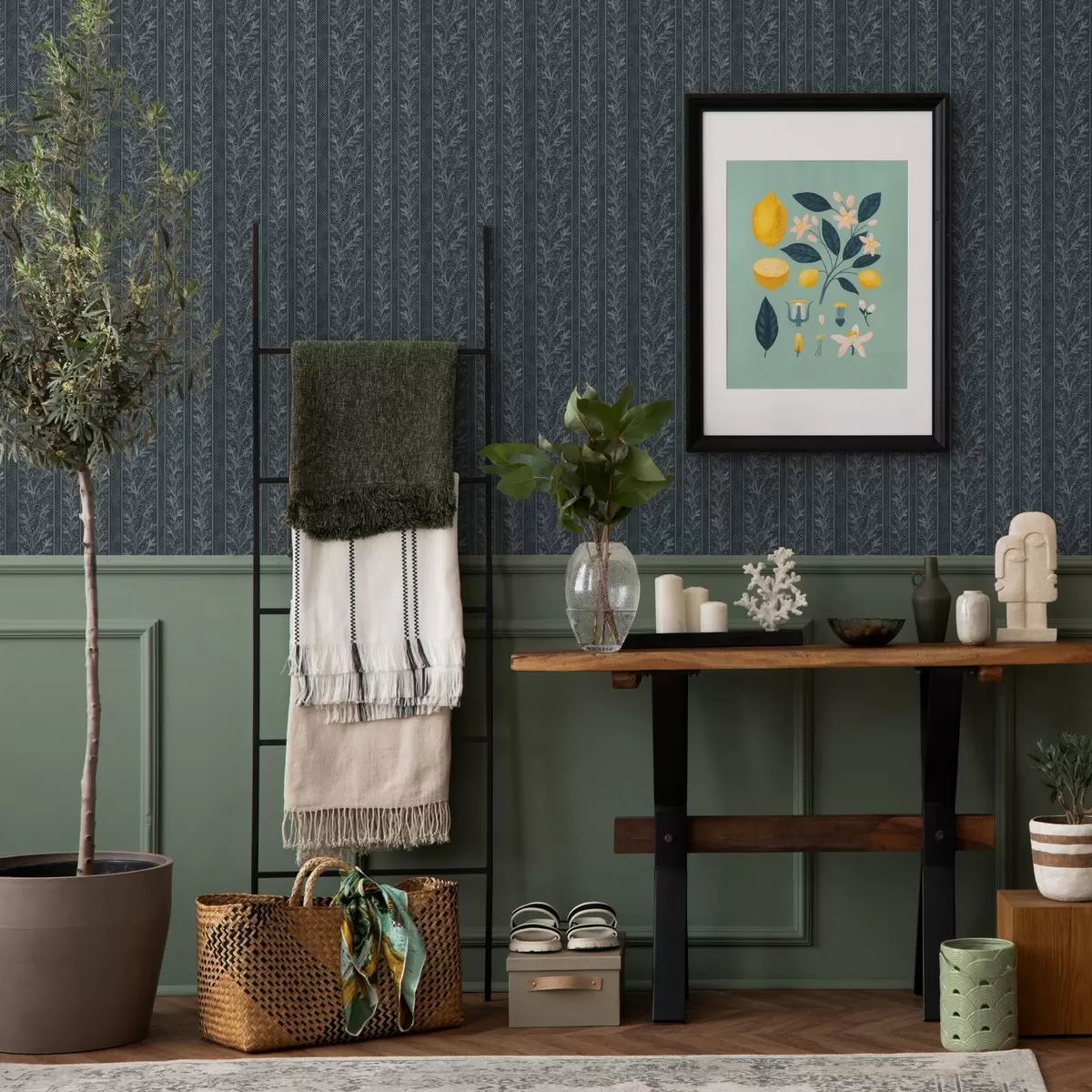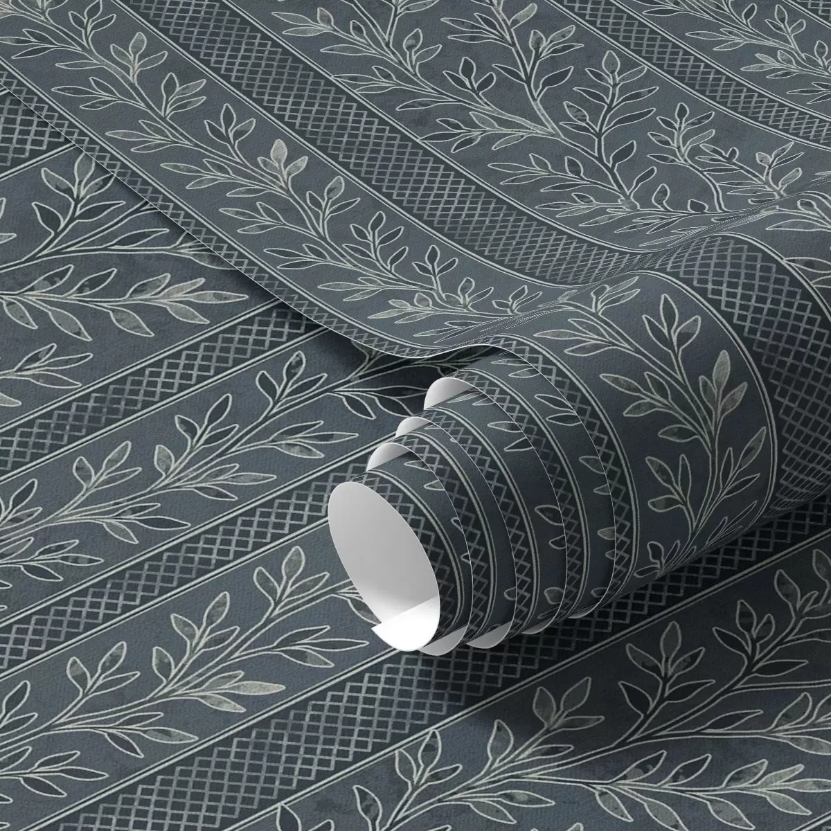 Tapeta Pruhovaný vzor s větvičkami na modrém pozadí Nr. a00425