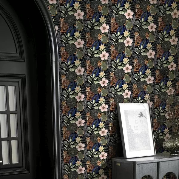 Tapeta Tygři mezi pestrými tropickými květy a listy Nr. a00426