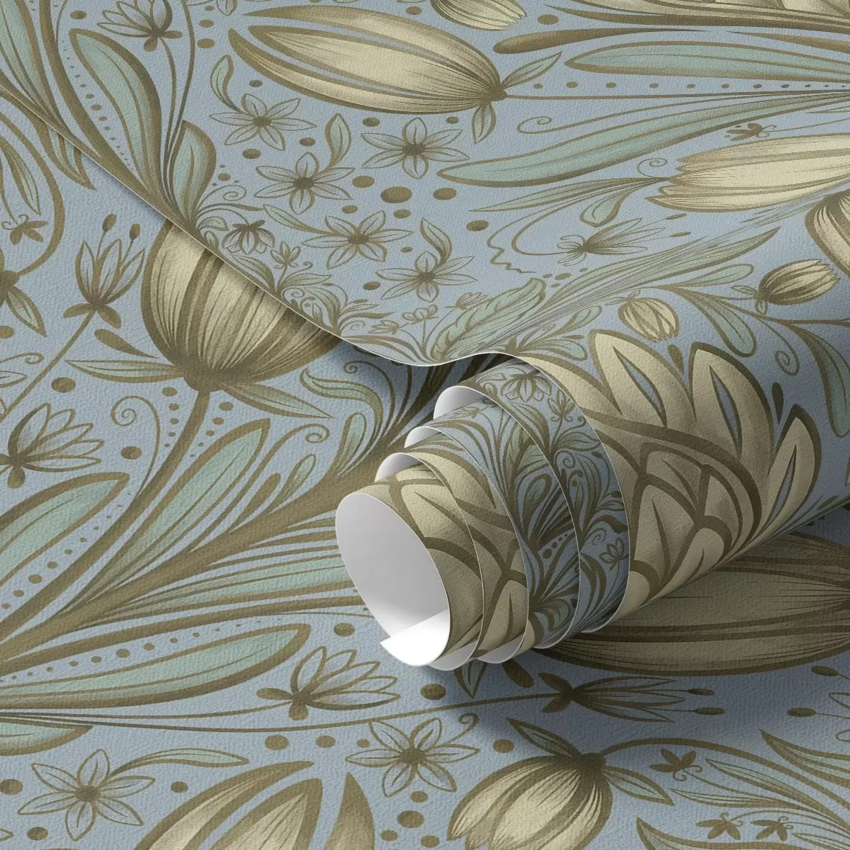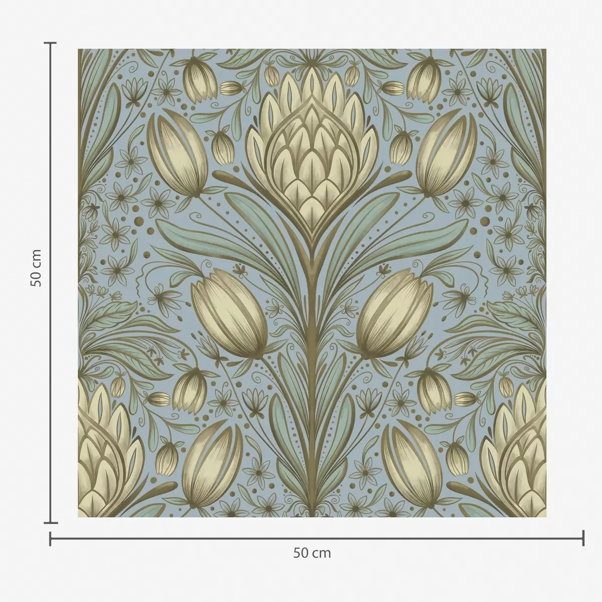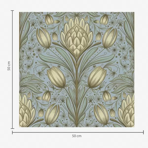 Tapeta Modrý vzor s artyčoky a tulipány Nr. a00435
