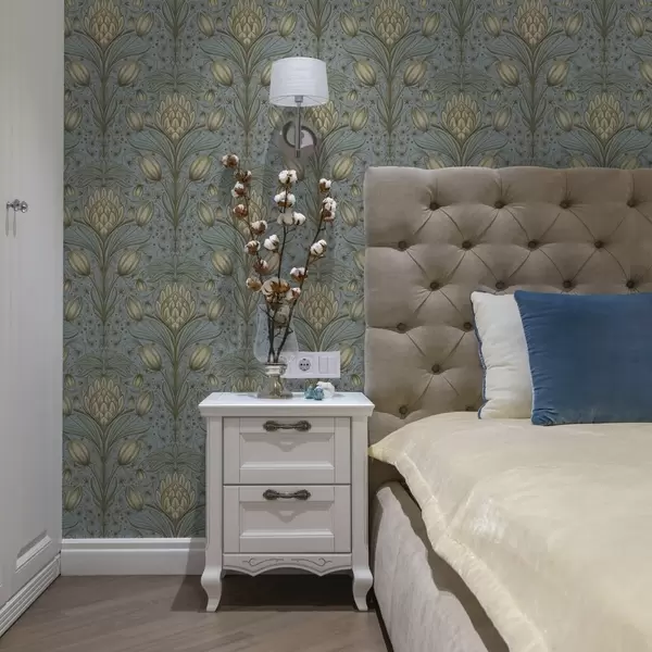 Tapeta Modrý vzor s artyčoky a tulipány Nr. a00435
