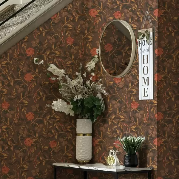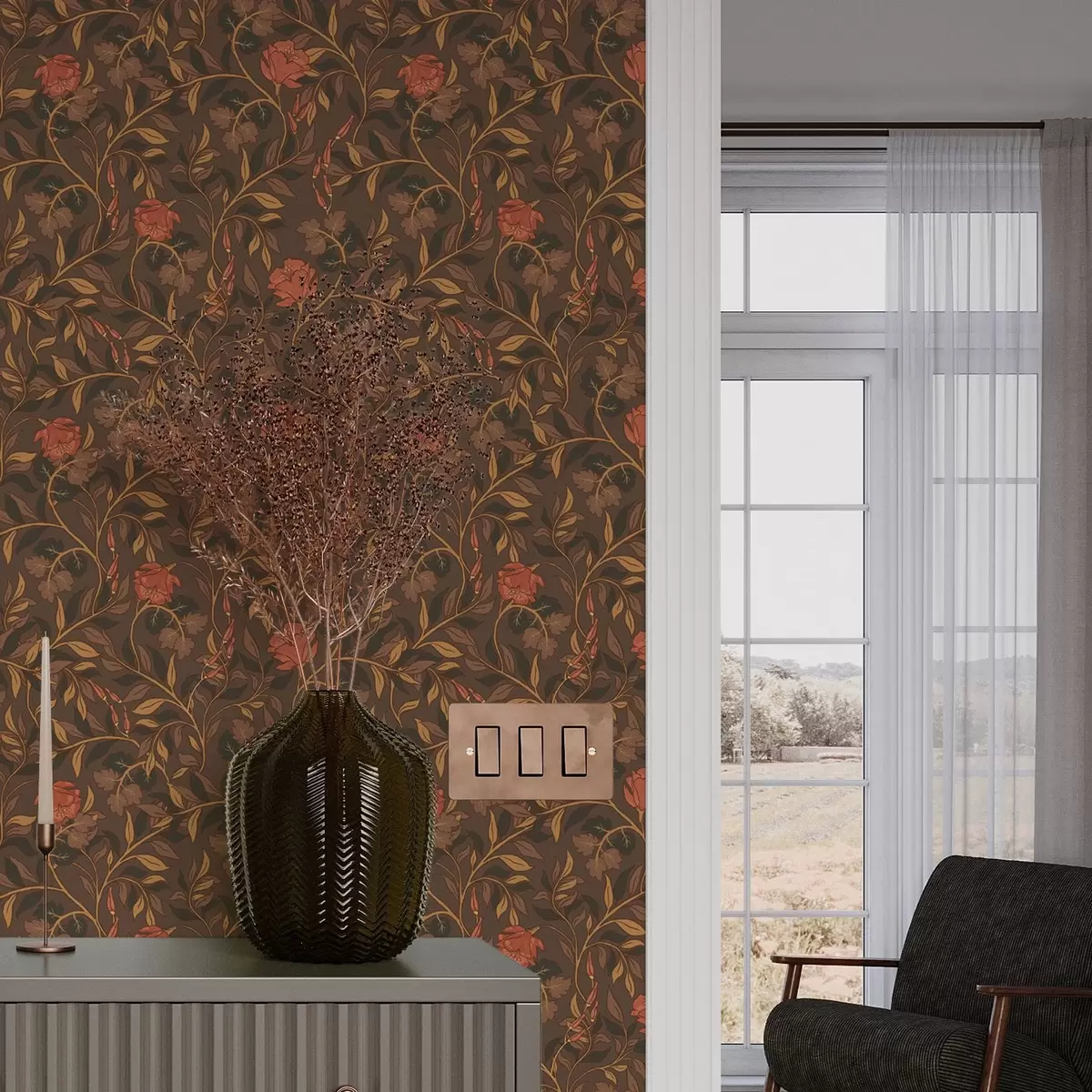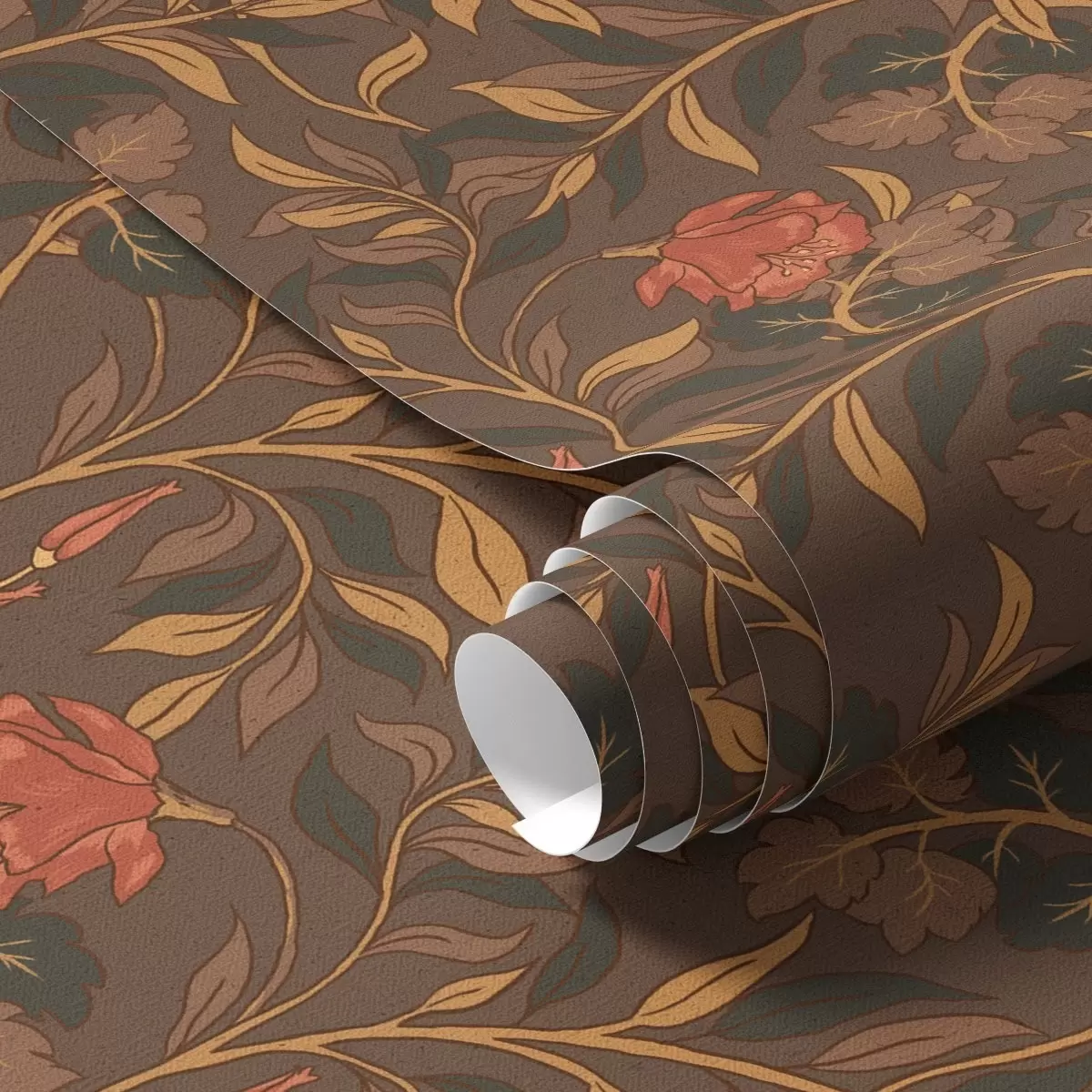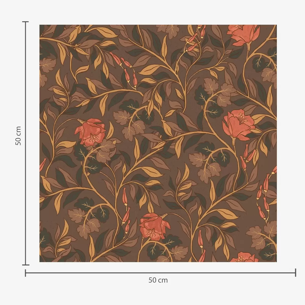 Tapeta Kvetoucí terakotové větve na hnědém pozadí Nr. a00460