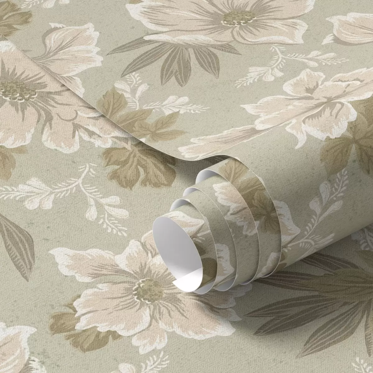 Tapeta Krémové květy na olivově zeleném pozadí Nr. a00462