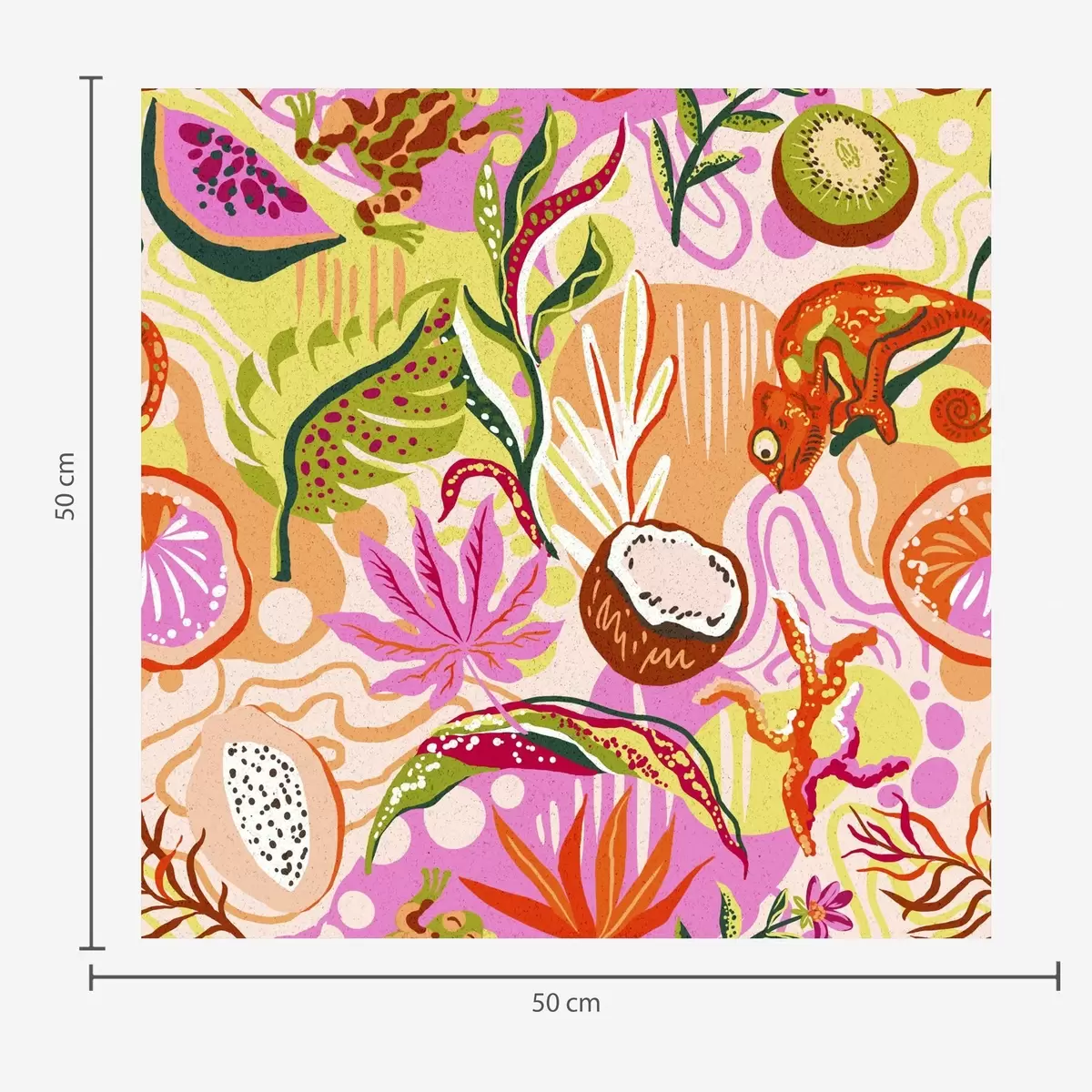 Tapeta Exotické ovoce, listy a chameleoni v tropickém stylu Nr. a00469