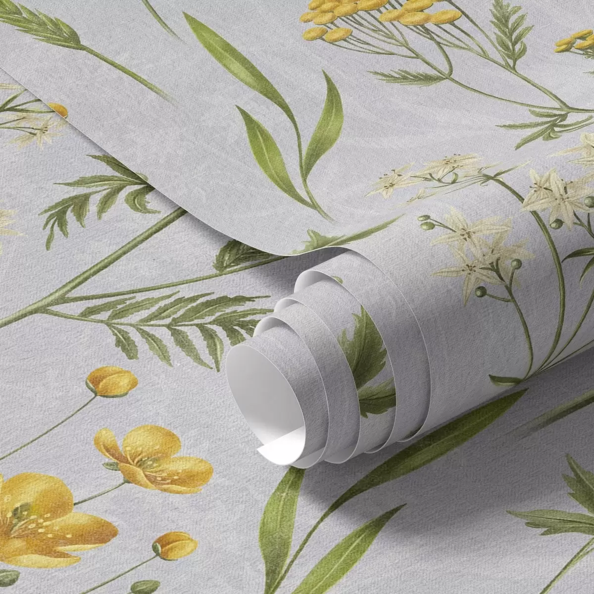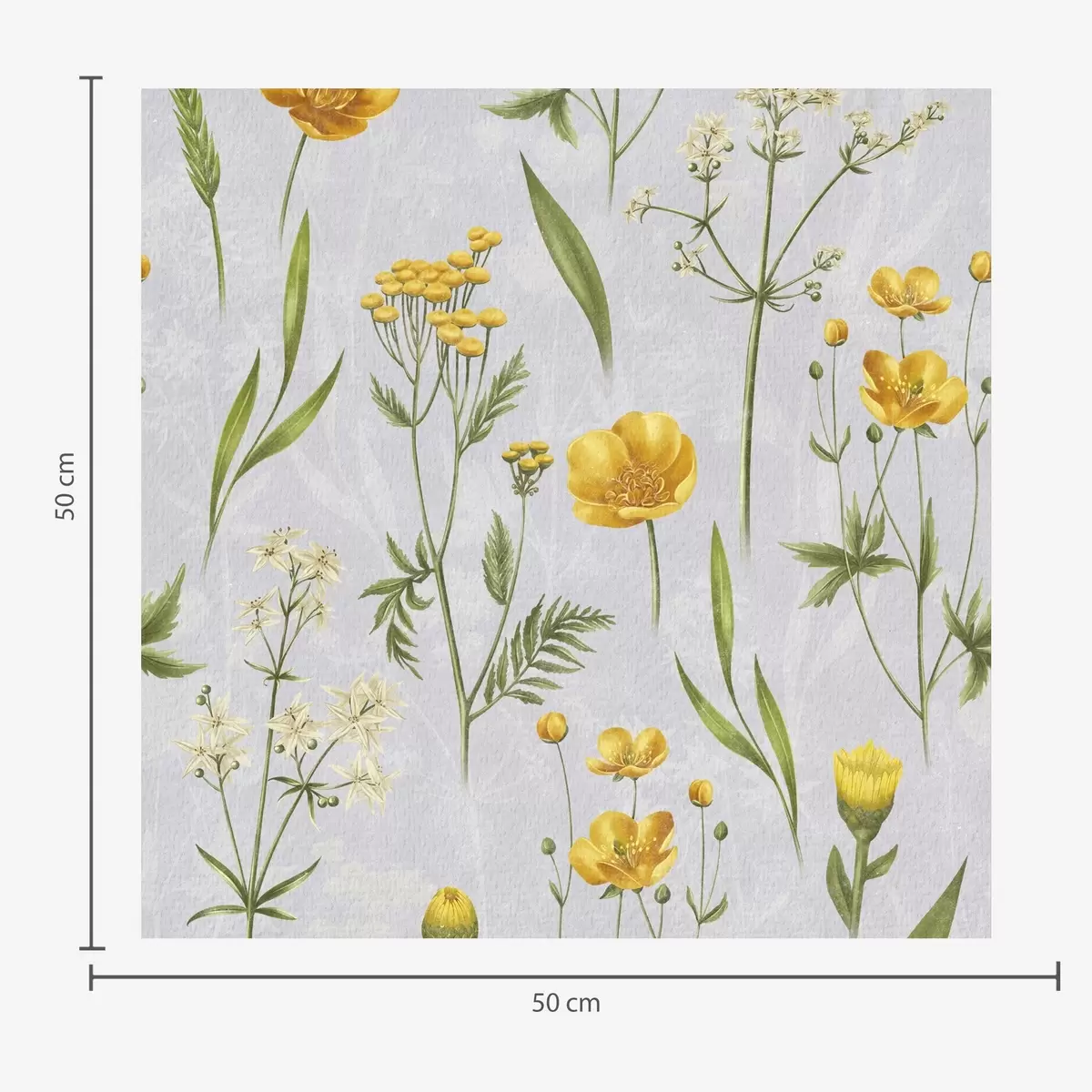 Tapeta Žluté květy a zeleň na světle šedém pozadí Nr. a00472