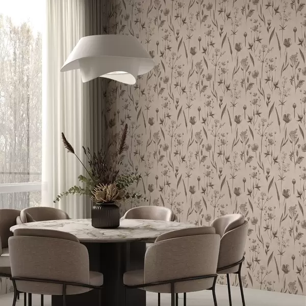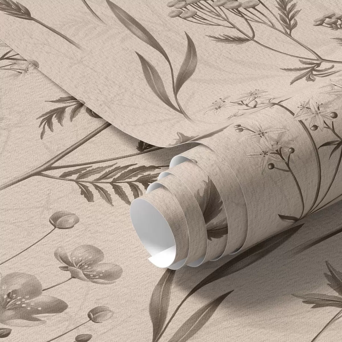 Tapeta Žluté květy a zeleň v šedohnědých tónech Nr. a00472v1