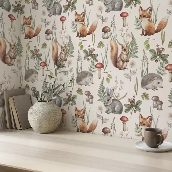 Tapeta Lesní zvířata, houby a rostliny v pohádkovém stylu Nr. a00477