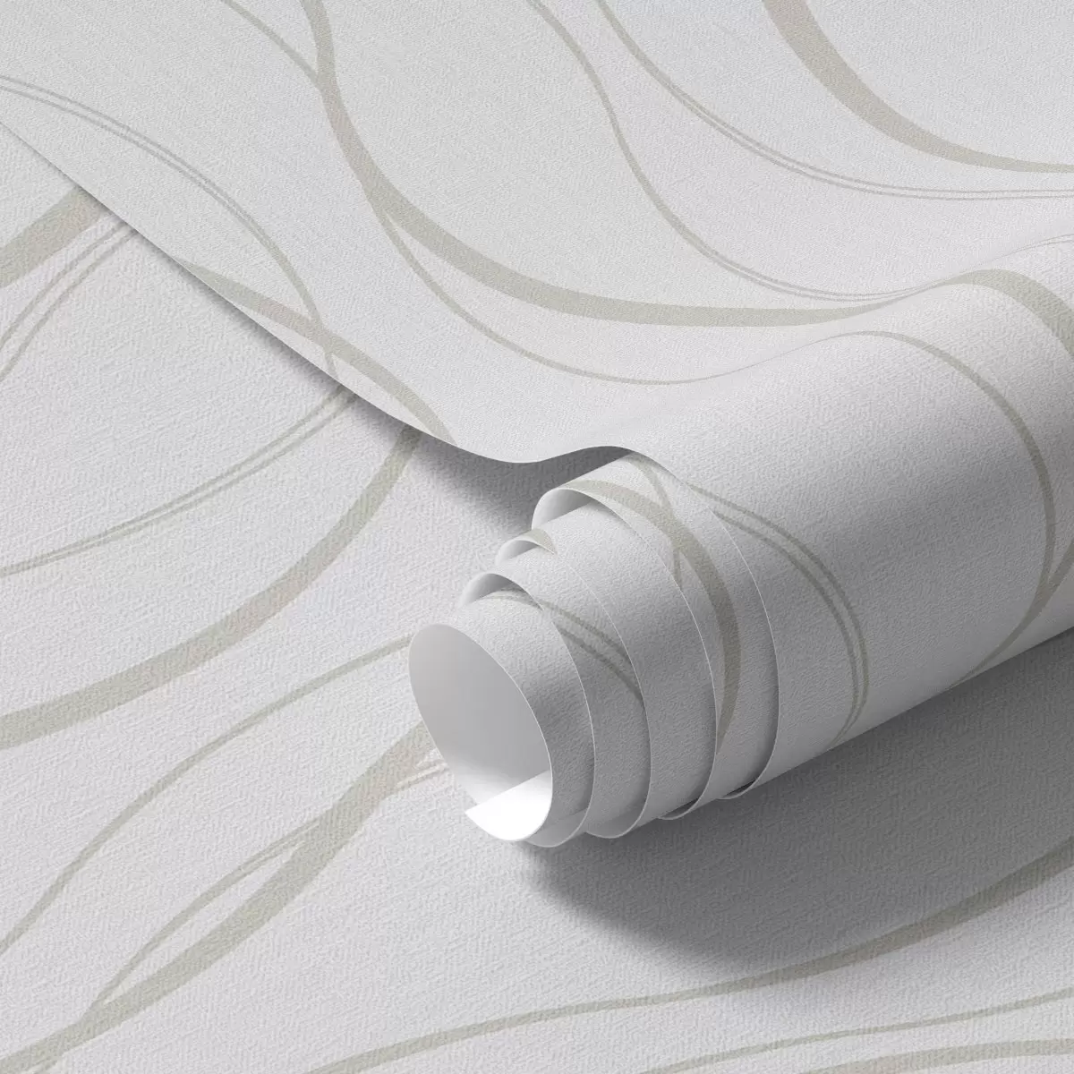 Tapeta Abstraktní zvlněné béžové čáry na bílém pozadí Nr. a00480