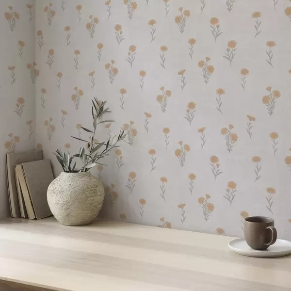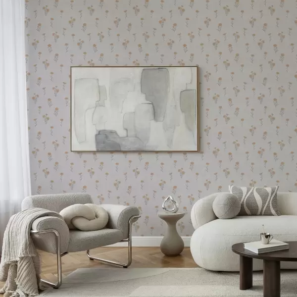 Tapeta Malé oranžové květy na světle šedém pozadí Nr. a00486