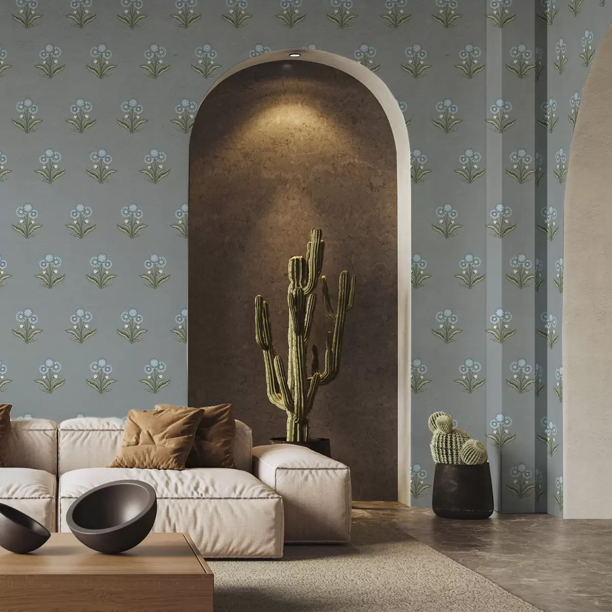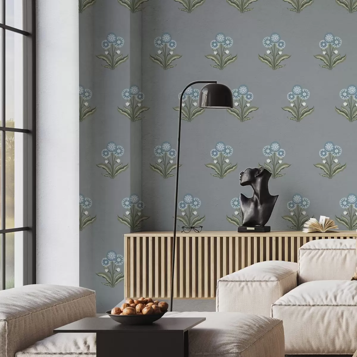 Tapeta Stylizované květiny na šedomodrém pozadí, chladná paleta barev Nr. a00494v1