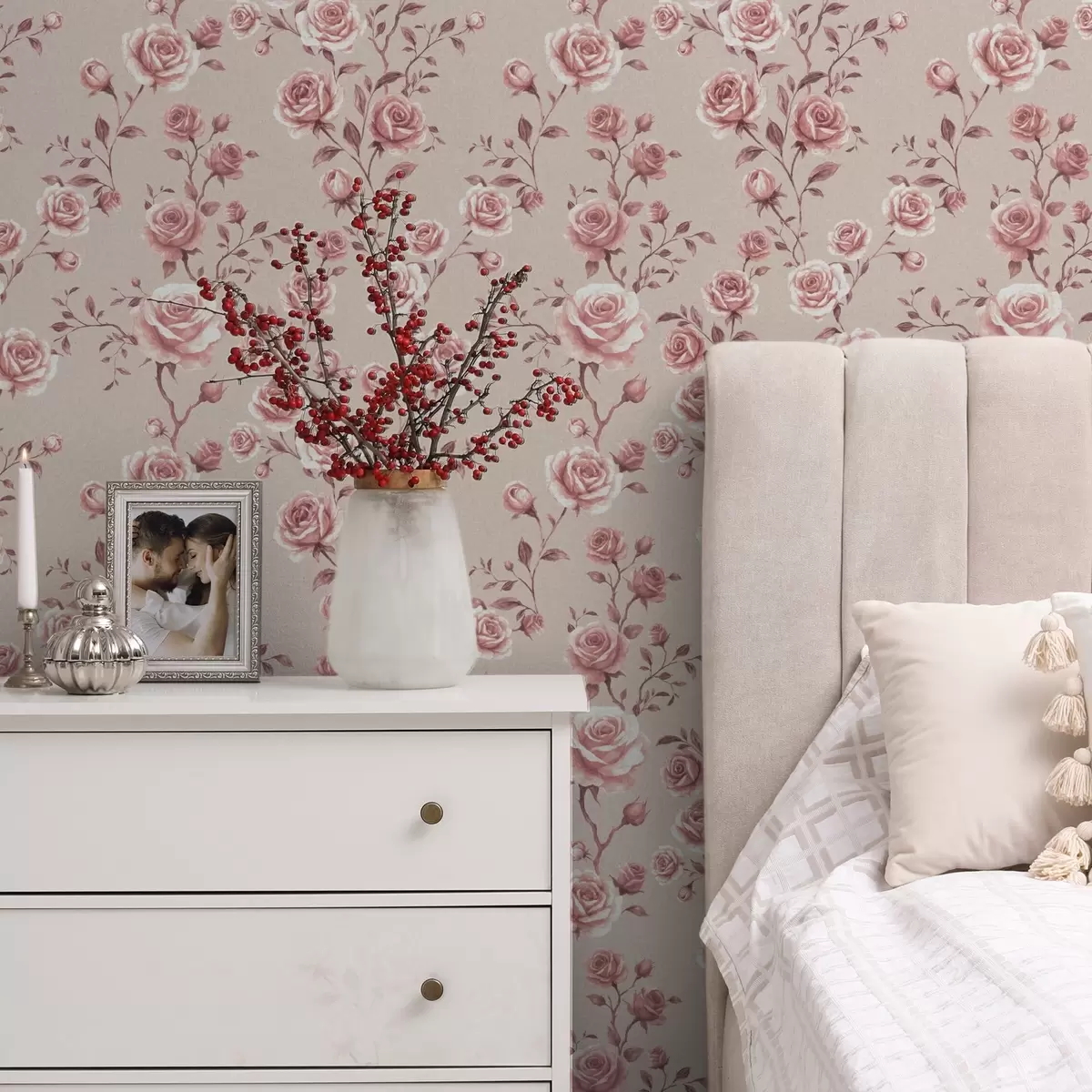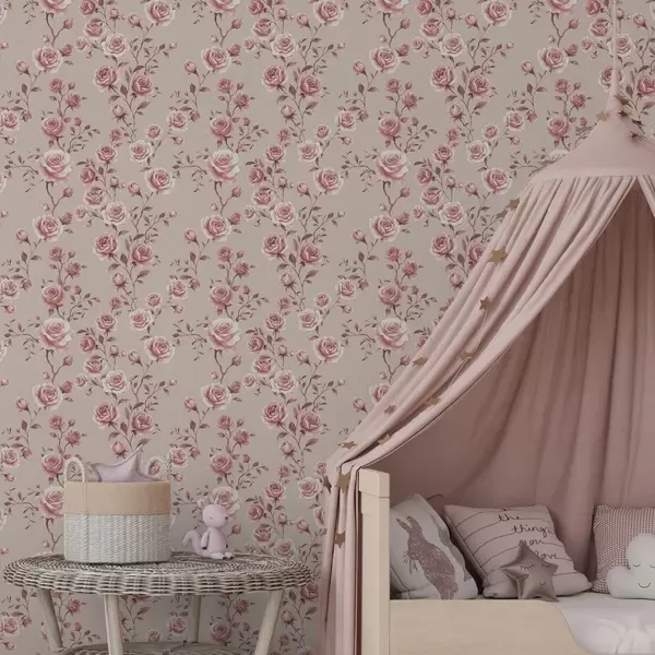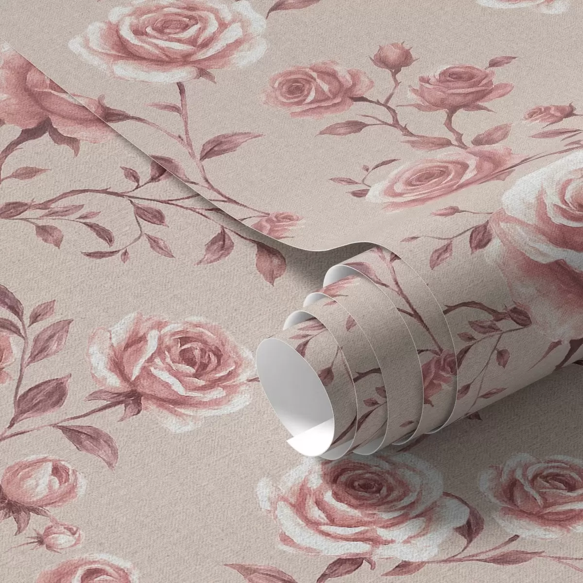 Tapeta Pudrové růže na béžovém pozadí — vintage vzor Nr. a00497