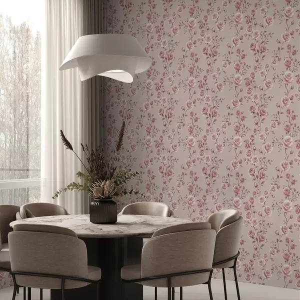 Tapeta Pudrové růže na béžovém pozadí — vintage vzor Nr. a00497