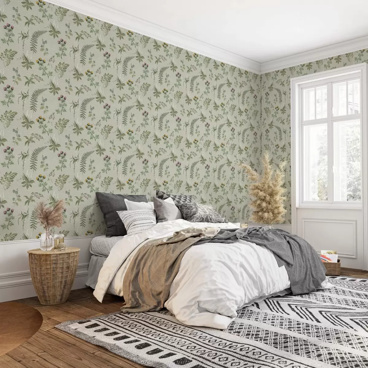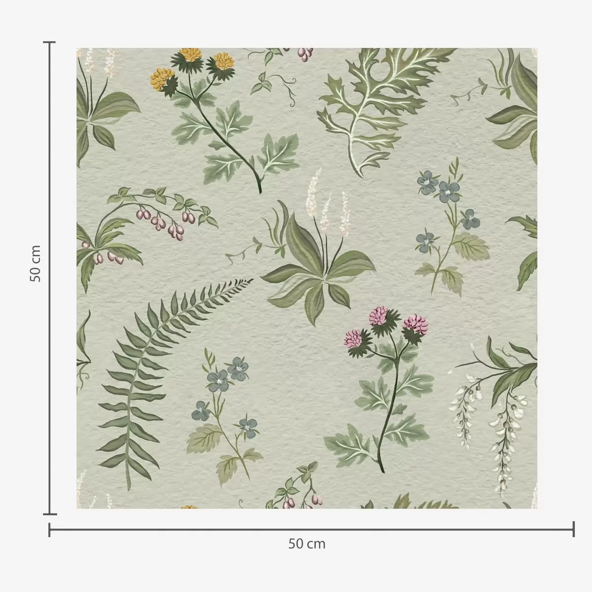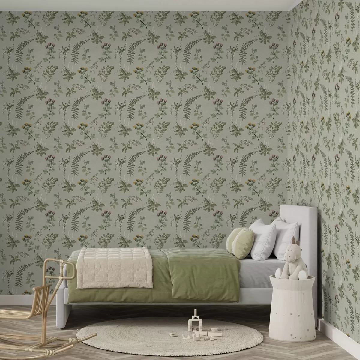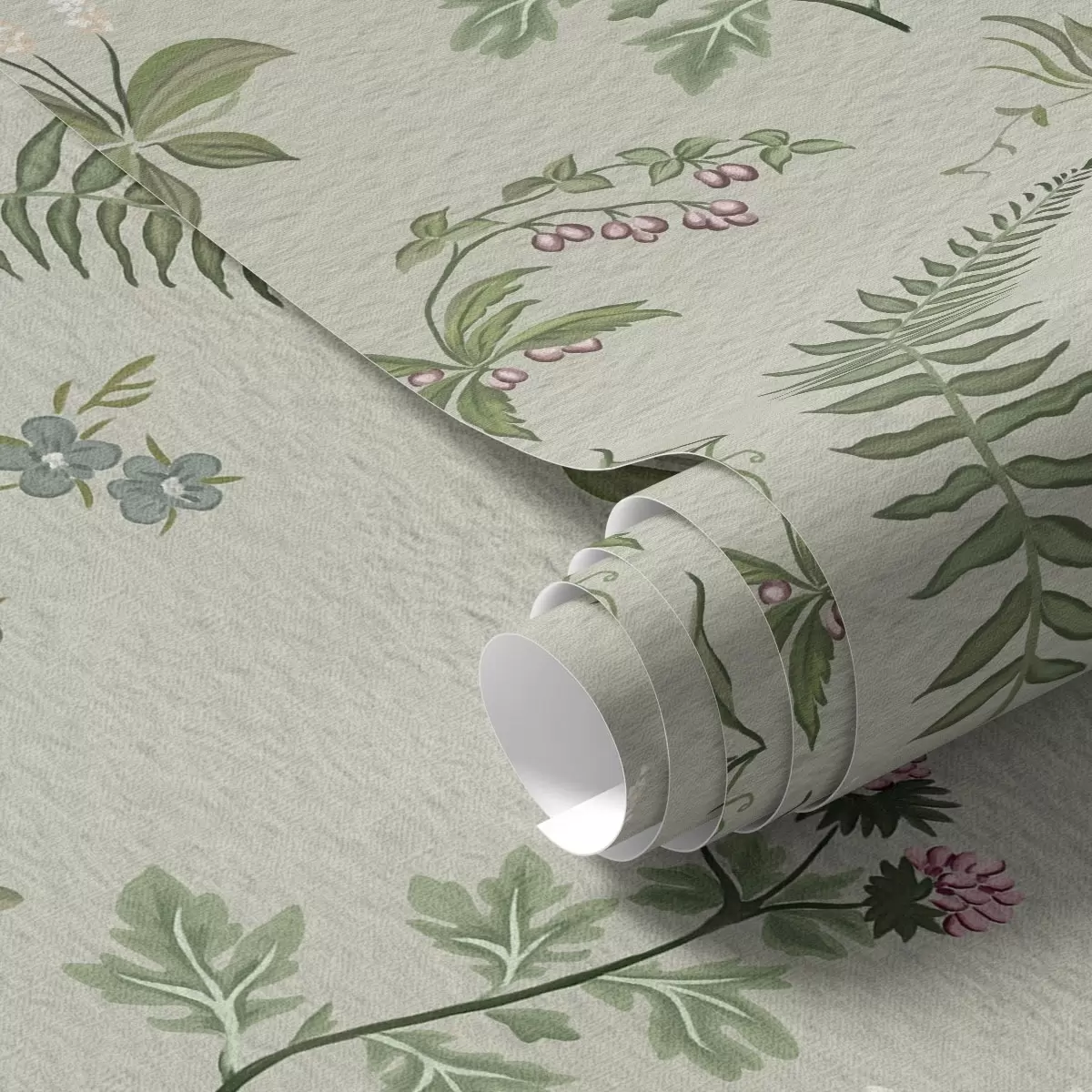 Tapeta Botanické trávy a kapradiny na světle šedozeleném podkladu Nr. a00498