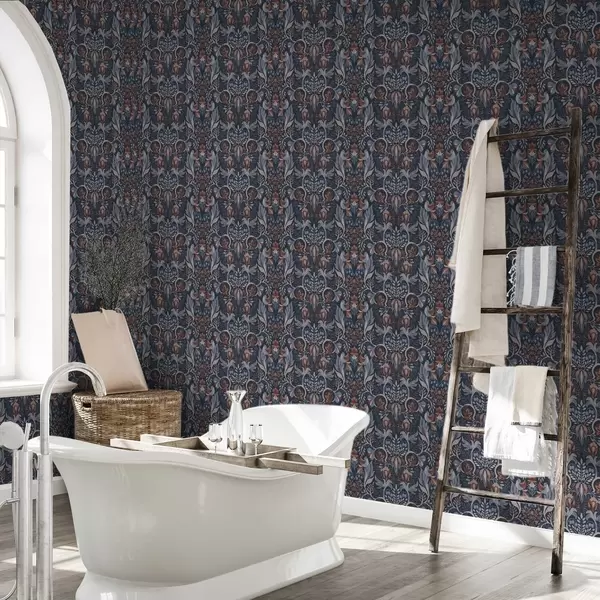 Tapeta Lidový ornament s ptáky, tmavě indigo Nr. a00502v1
