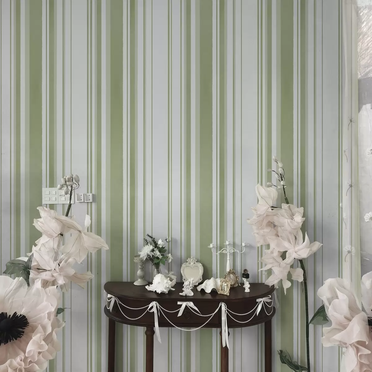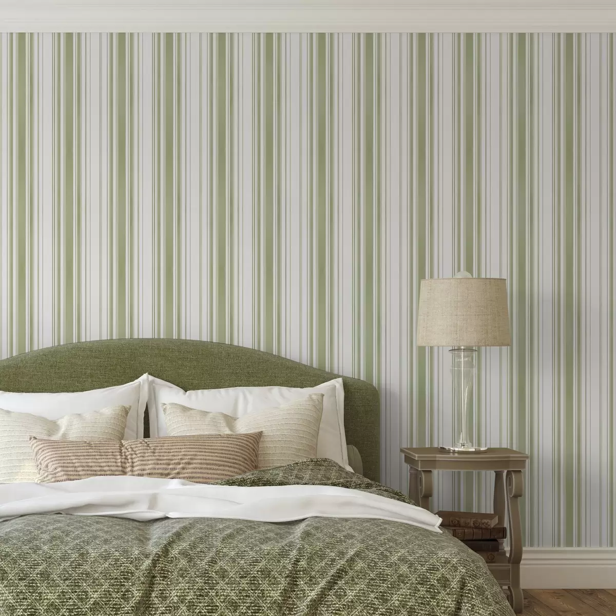 Tapeta Zelené pruhy různé šířky na světlém pozadí Nr. a00523