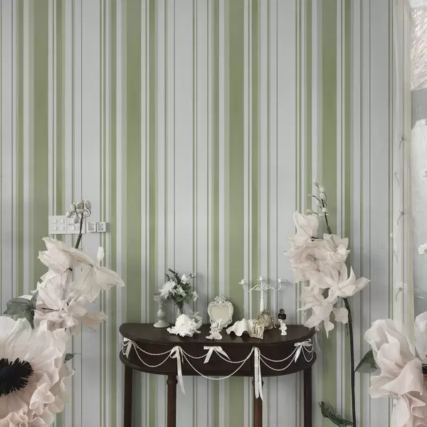 Tapeta Zelené pruhy různé šířky na světlém pozadí Nr. a00523
