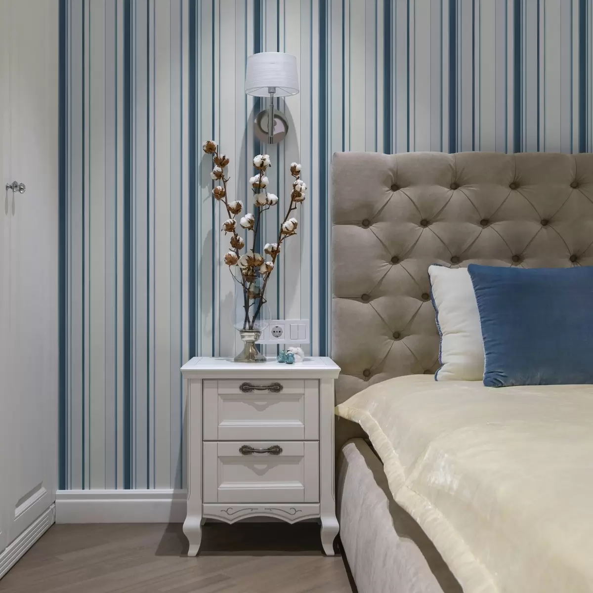 Tapeta Tyrkysové a modré pruhy různé šířky na světlém pozadí Nr. a00530
