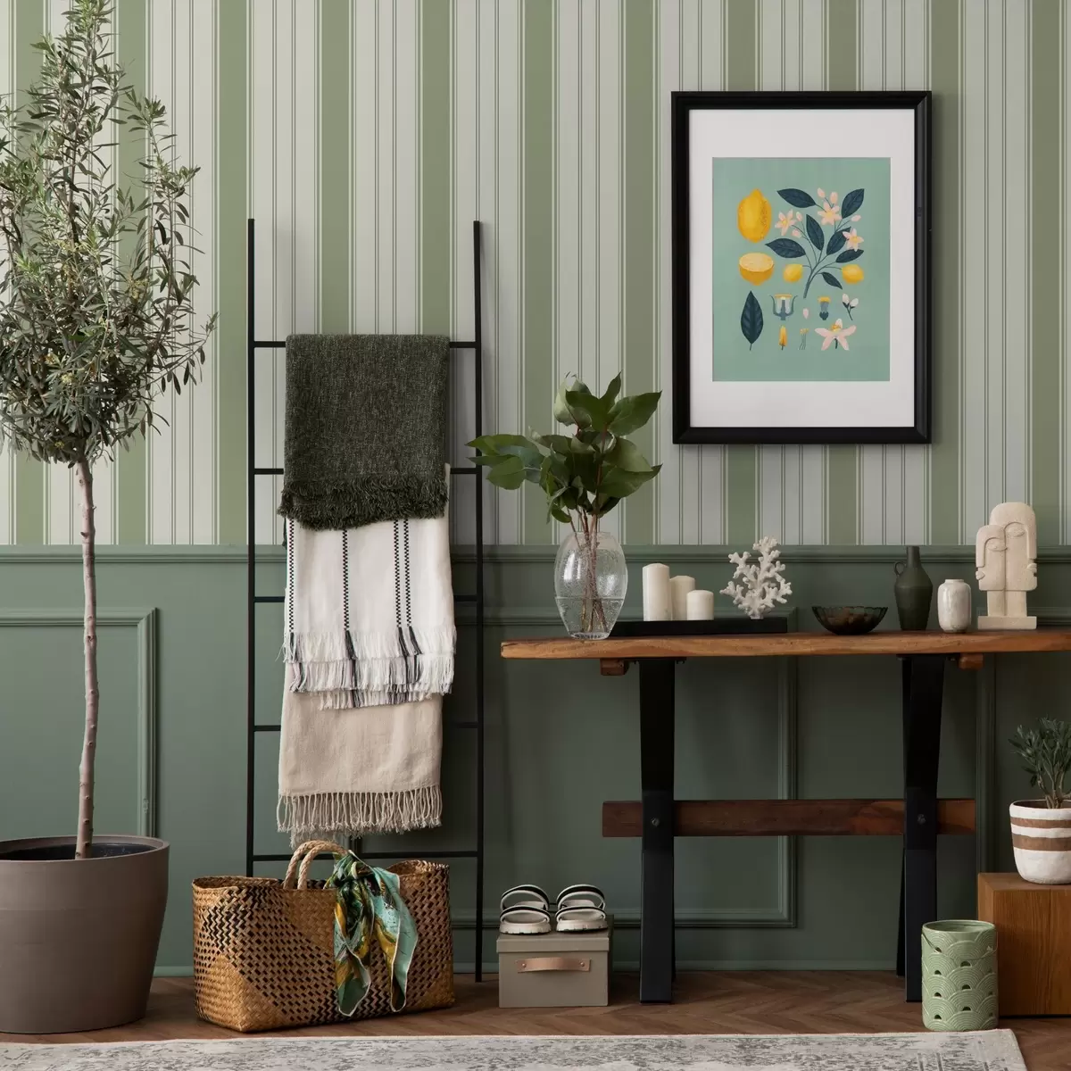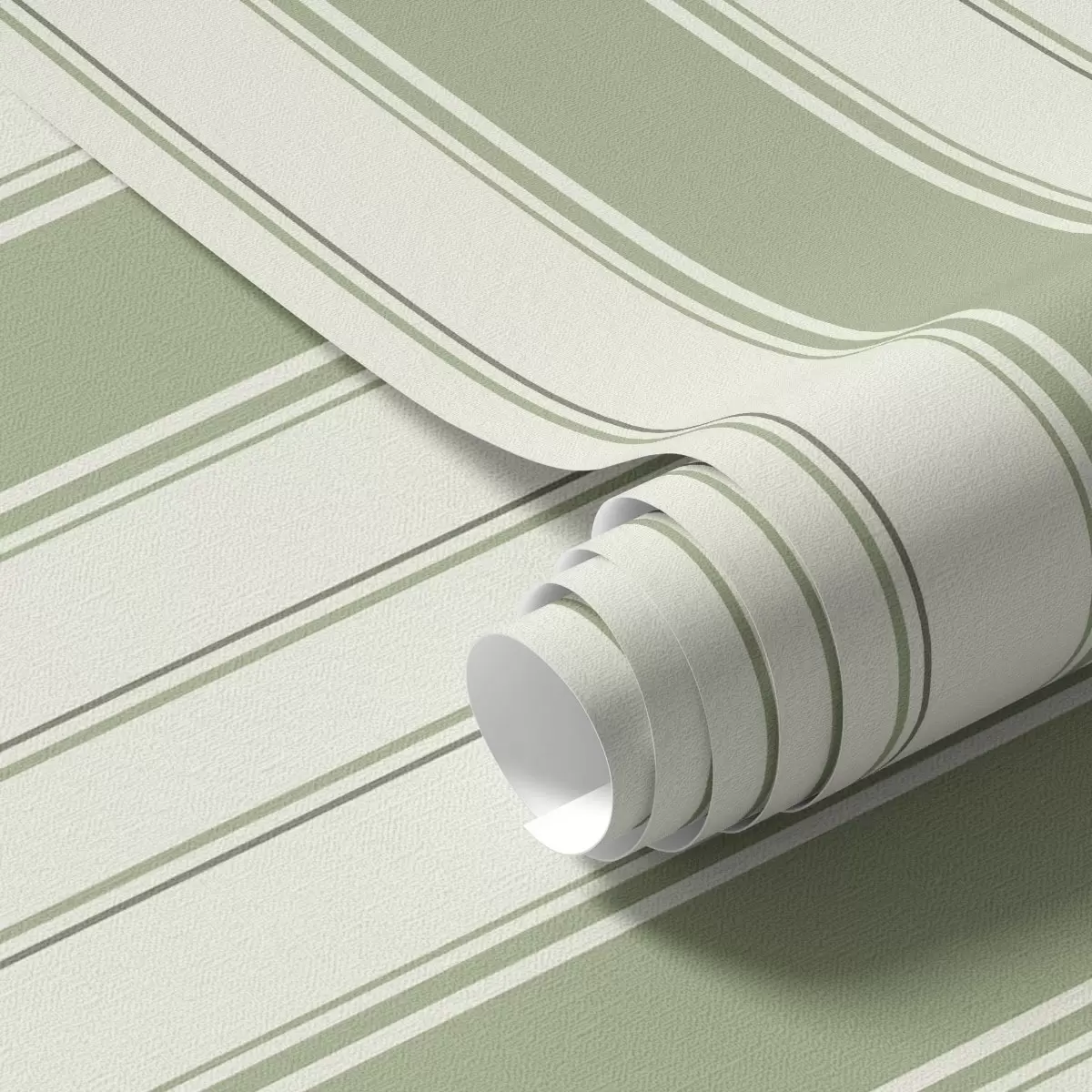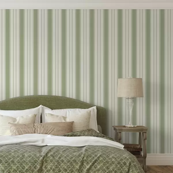 Tapeta Krémové pozadí s rovnoměrnými zelenými svislými pruhy Nr. a00560